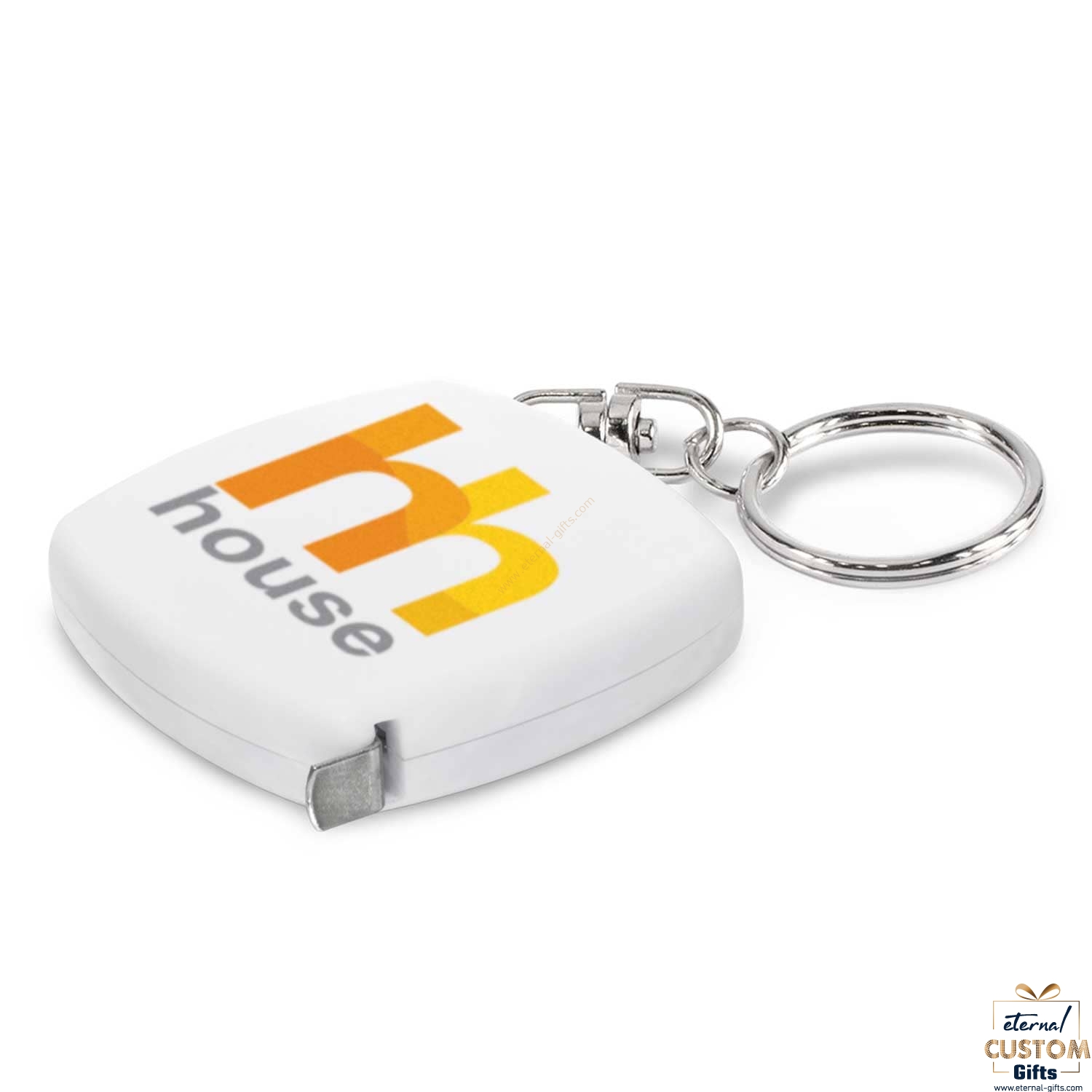 Small 2m tape measure with a key ring which has both centimetres and inches on the metal tape.