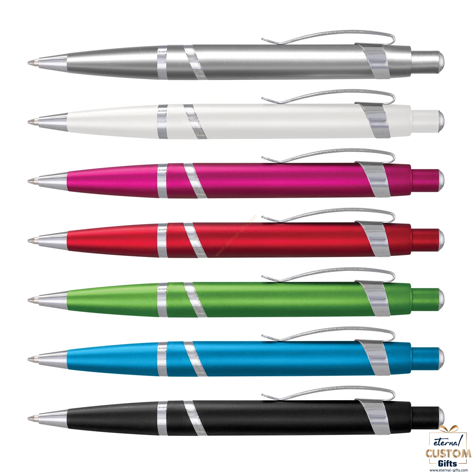 Silver, White, Pink, Red, Green, Blue, Black.