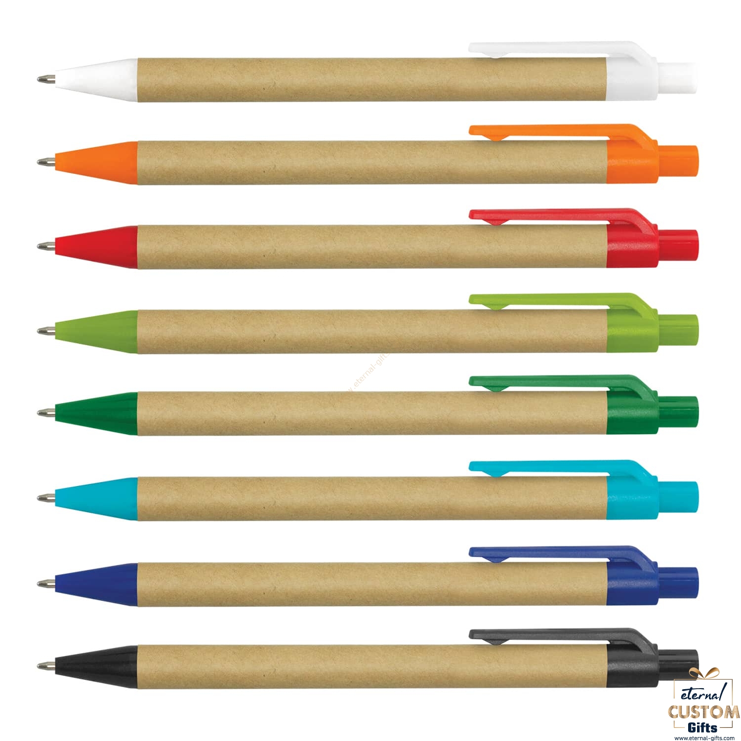 • Retractable ballpoint pen with a recycled cardboard barrel
