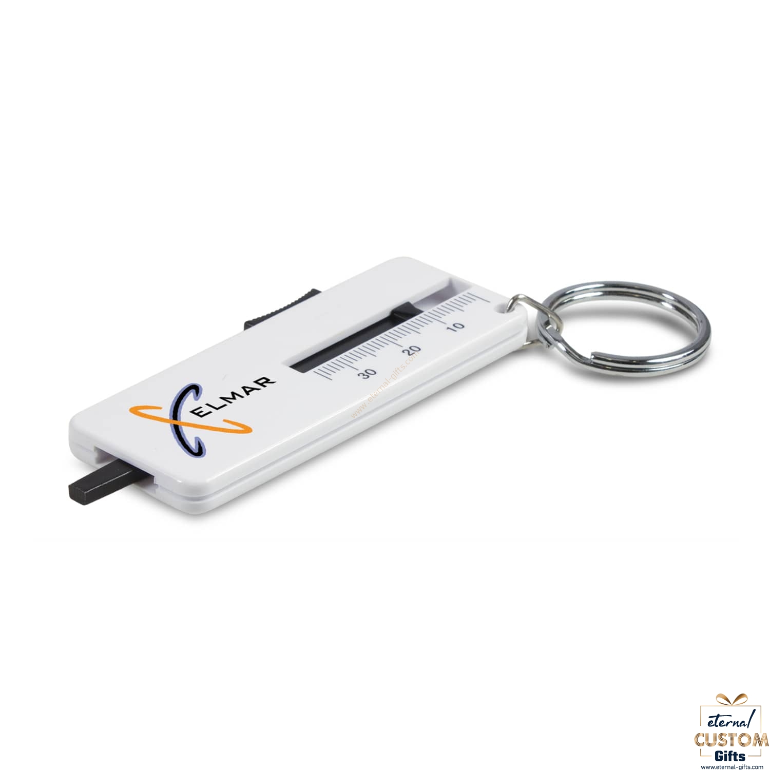 Tool for measuring tyre tread depth with a handy key ring attachment.