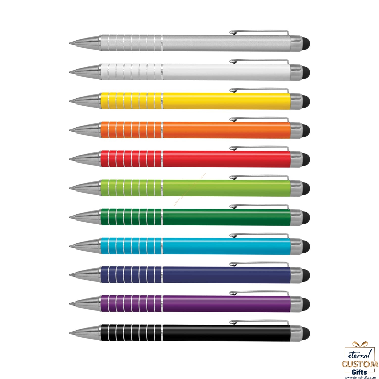 - Compact twist-action aluminium ballpoint pen with a stylus