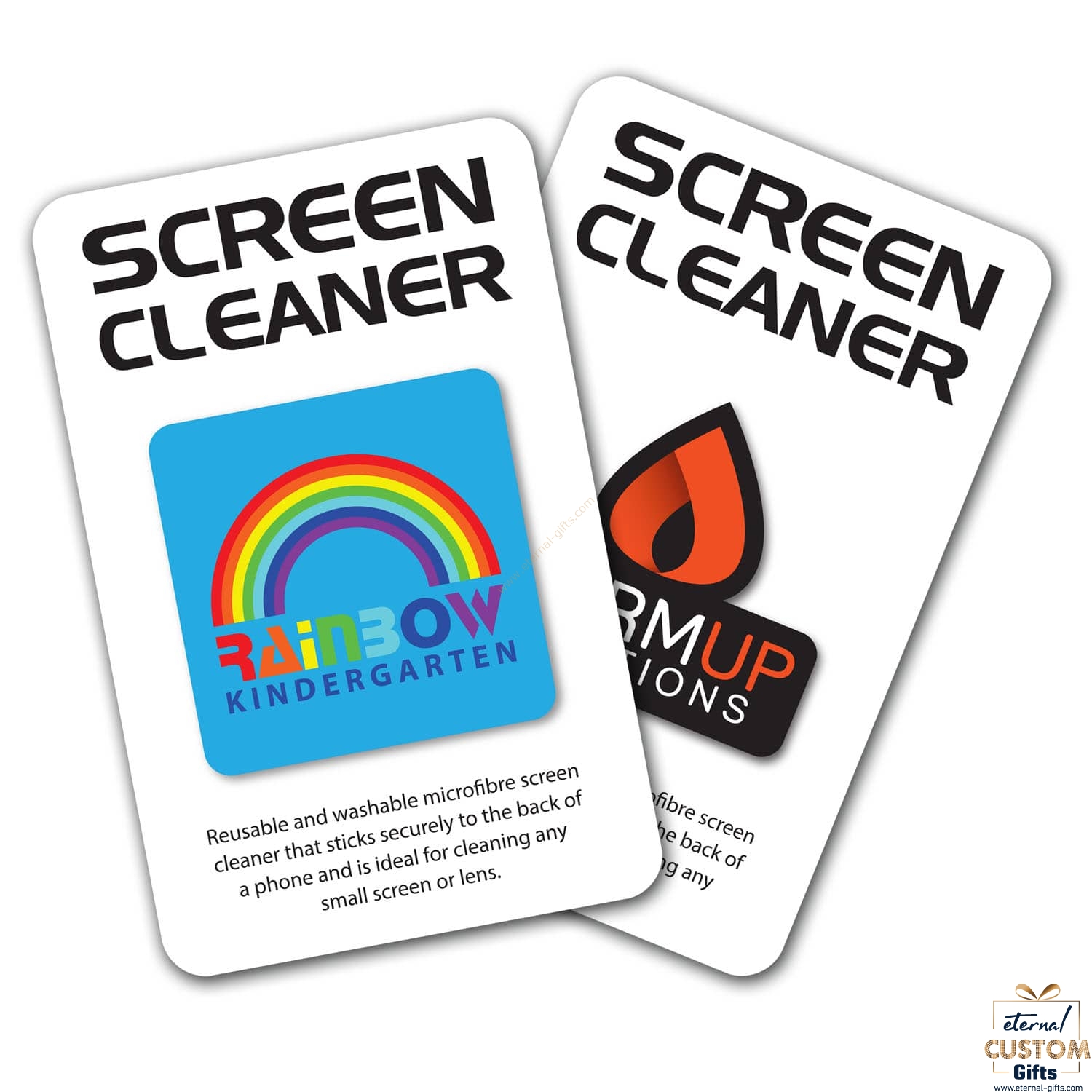 Compact microfibre screen cleaner which sticks securely to the back of a phone when not in use. It has an adhesive backing that remains sticky for many uses and can be washed and reused. Sticky Screen Cleaner is ideal for cleaning phones, cameras and any other devices with small screens. It can be branded in spot colours or stunning full colour and is available in custom shapes at no extra cost but there is a size restriction. The screen cleaner is mounted on a card with instructions for use. A production lead time of 20 working days applies to this product by airfreight and larger orders can be sea freighted on request to reduce the freight cost.