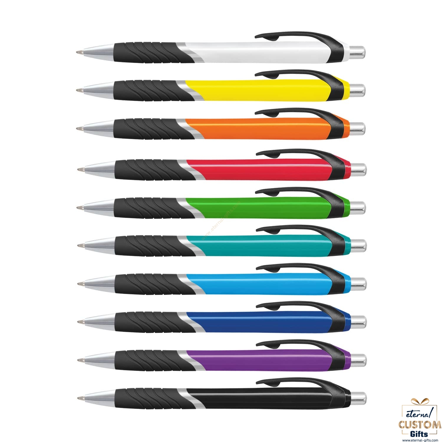 - Retractable plastic ballpoint pen with shiny chrome trim