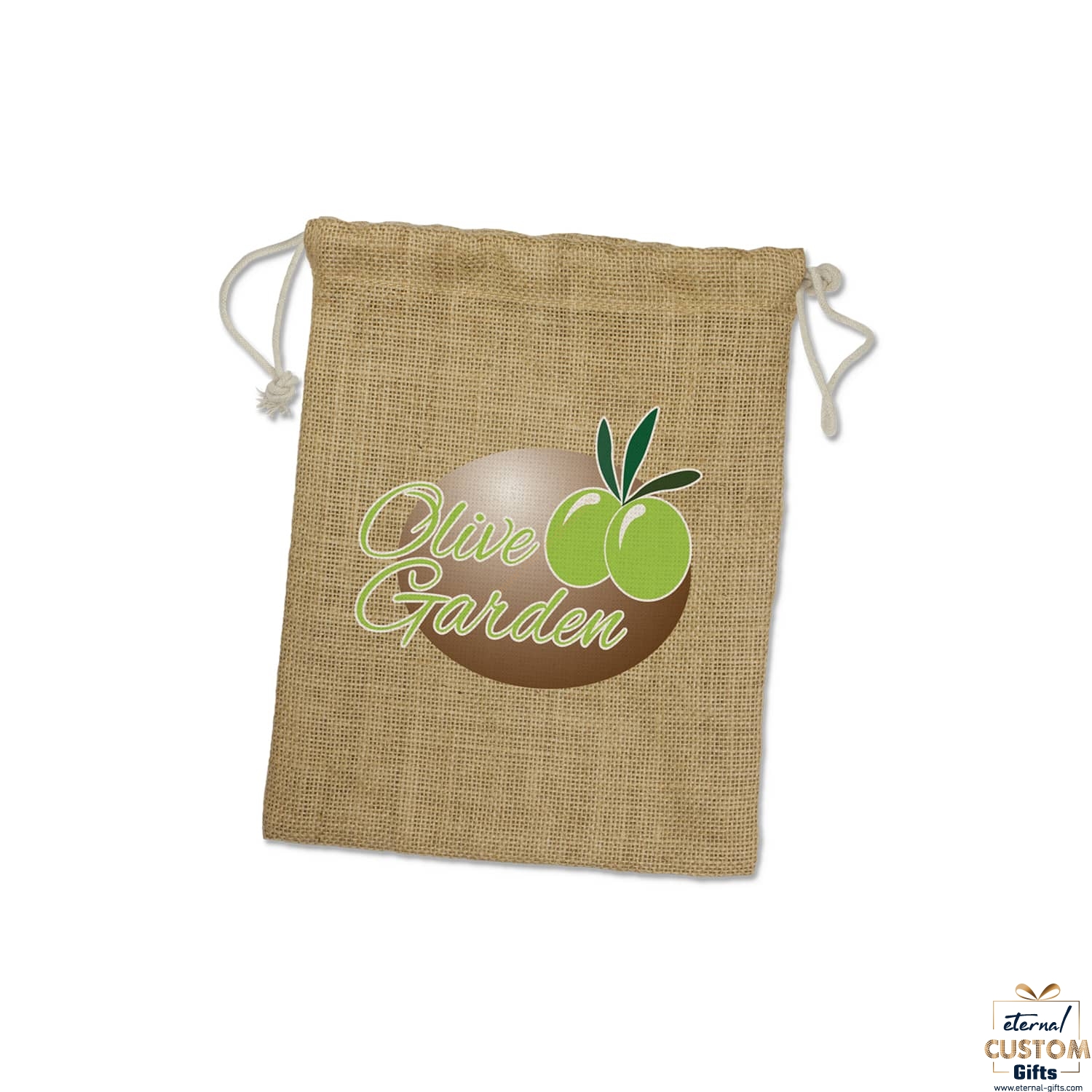 Natural jute drawstring gift bag with cotton drawstrings and the choice of three sizes.