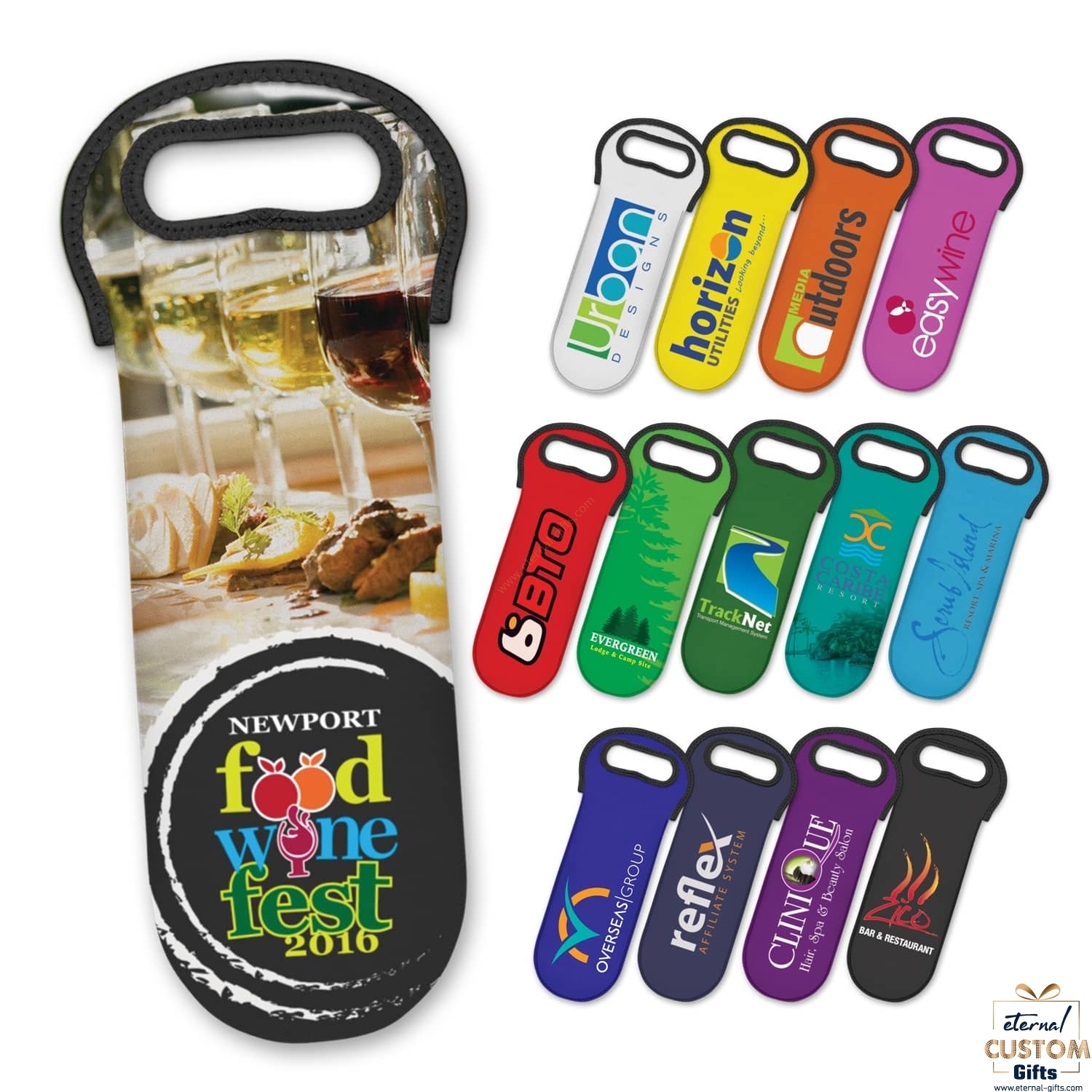 Convenient carry bag for transporting one bottle of wine while keeping it cool. It is manufactured from neoprene which has excellent insulation properties and it has black stitched reinforcing around the handles and opening. The bag can be branded in spot colours or full colour on both sides at no extra cost. A production lead time of 30 working days applies to this product by air freight and larger orders can be sea freighted on request to reduce the freight cost.