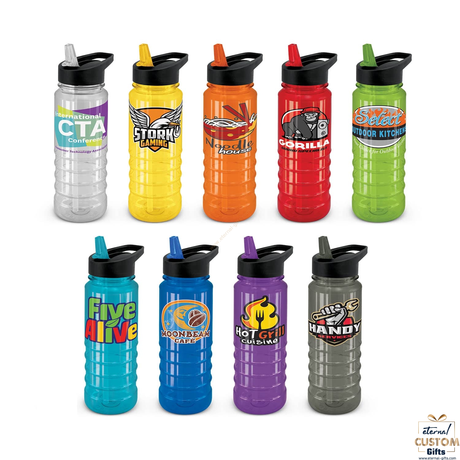 Sipper: Clear, Yellow, Orange, Red, Bright Green, Light Blue, Dark Blue, Purple, Black.