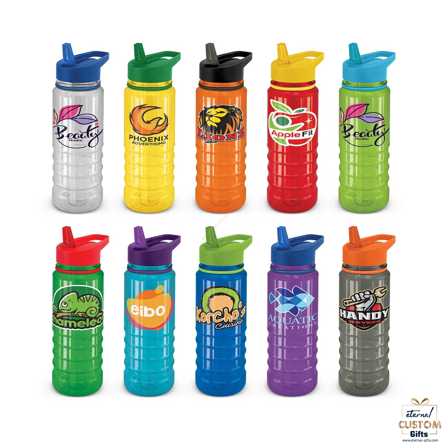 Classic 750ml drink bottle that is manufactured from Tritan, which is odour-resistant and BPA-free. It has a secure screw on lid that has a carry handle, a flip out drinking valve with a straw, and a decorative silicone ring. The bottle, lid and silicone ring can be mixed and matched in any colour combination from the colour palette at no extra cost. This product is not dishwasher safe and handwashing is recommended.