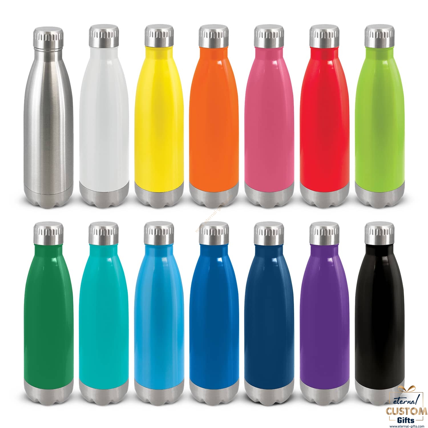 | Finish | Silver Bottle – Shiny Steel | Coloured Bottles – Gloss Painted |