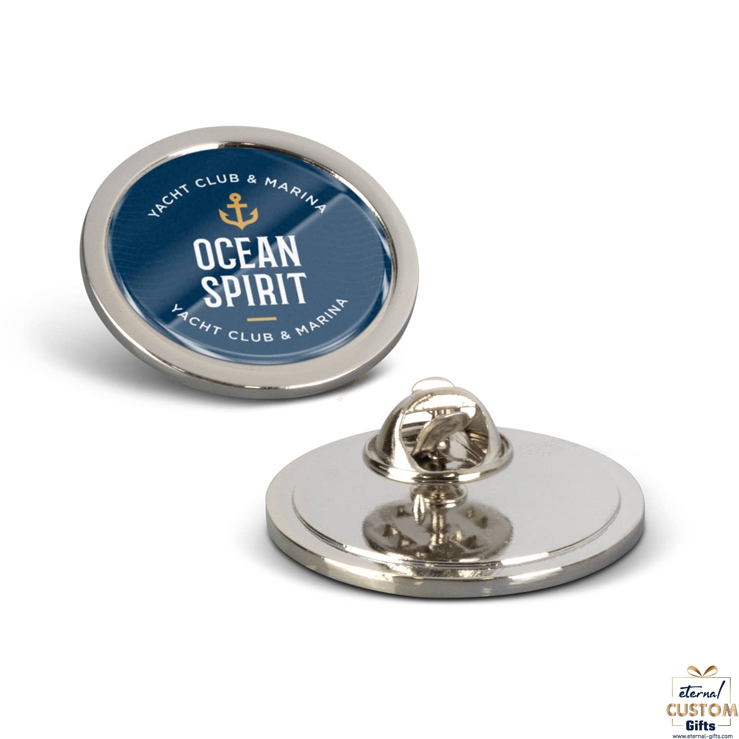 Metal lapel pins which are available in six standard sizes and shapes. They can be branded in spot colours or full colour with a luxury resin coated finish.