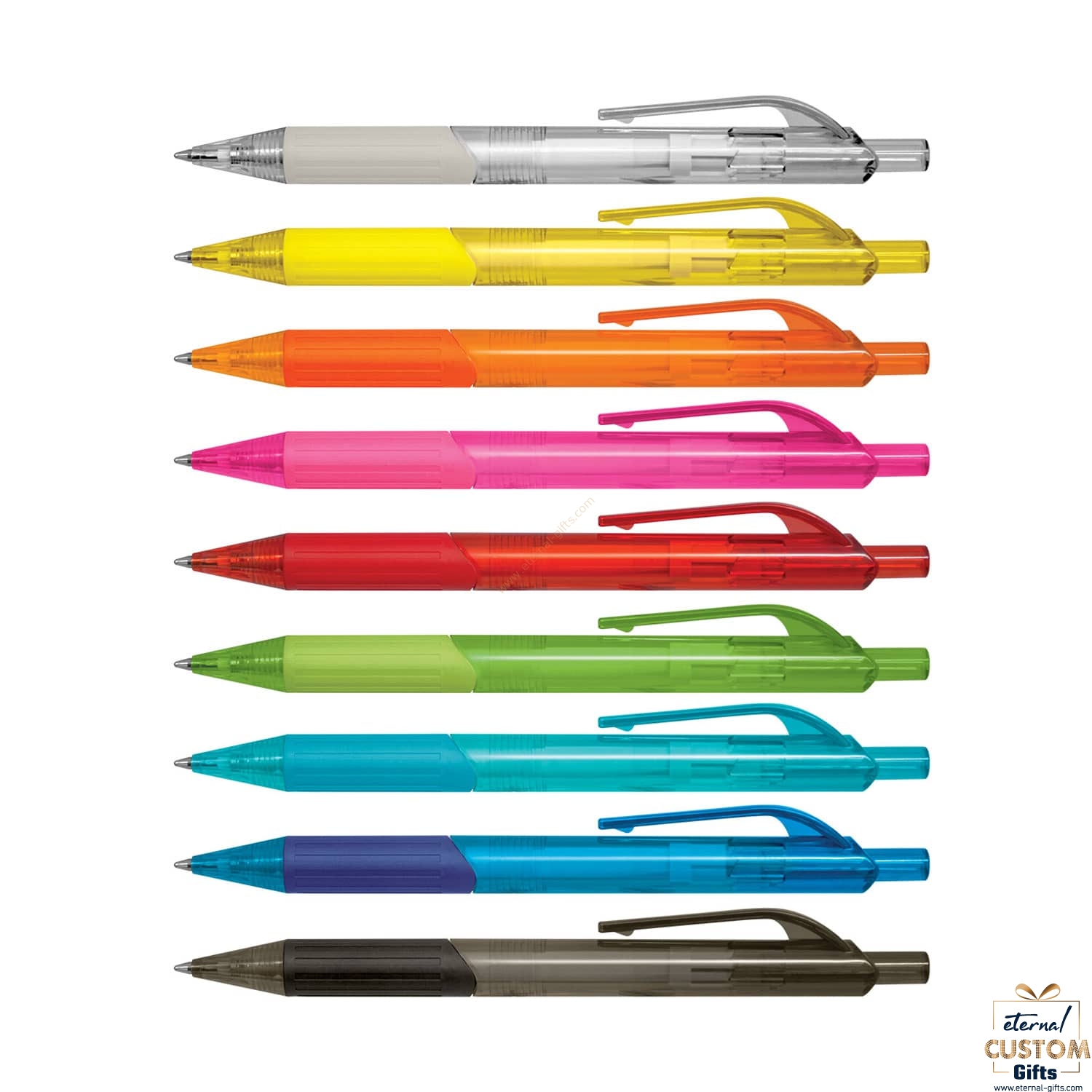 Clear, Yellow, Orange, Pink, Red, Bright Green, Light Blue, Dark Blue, Black.