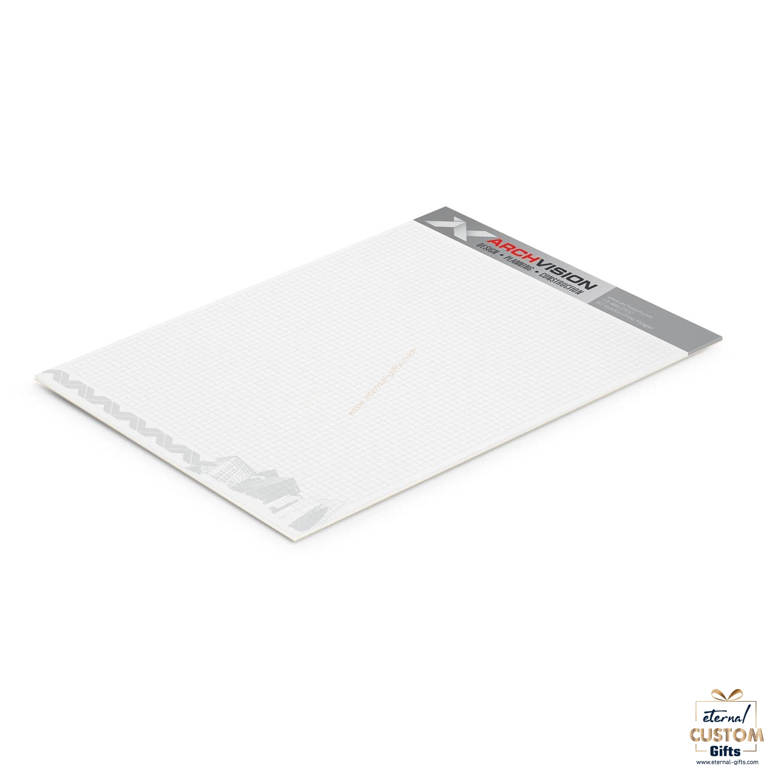 Large sketching pad with 25 leaves of quality 70gsm paper and a cardboard back which can be padded in either portrait or landscape. It is printed using four colour process which gives the option of unlimited spot colours or stunning full colour at no extra cost. PMS colour matches are only approximate. Edge-to-edge printing is available and a sketching grid can be added if required. A production lead time of 25 working days applies to this product. This item can only be ordered in the quoted order quantities.