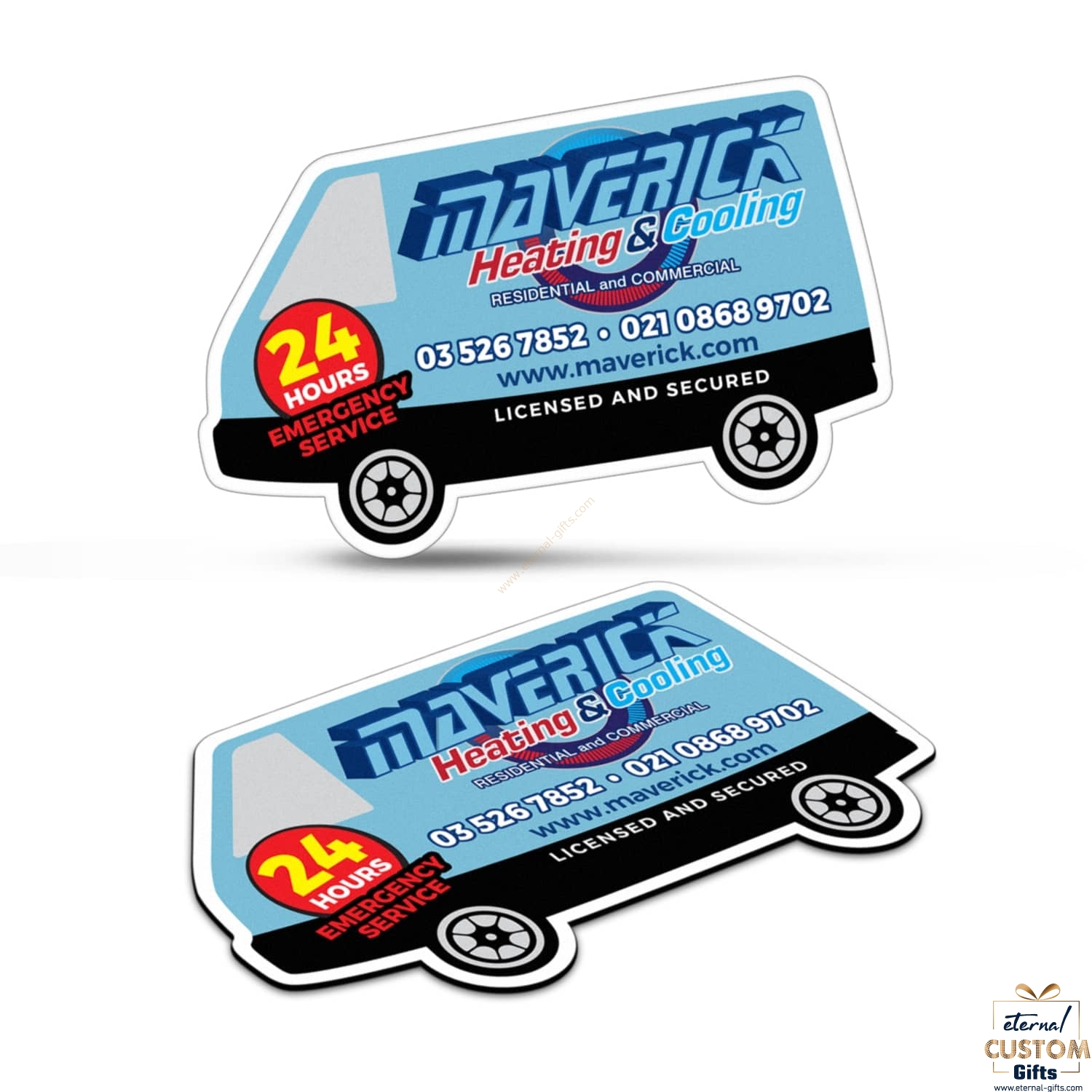 • Van-shaped fridge magnets with a high gloss laminated finish