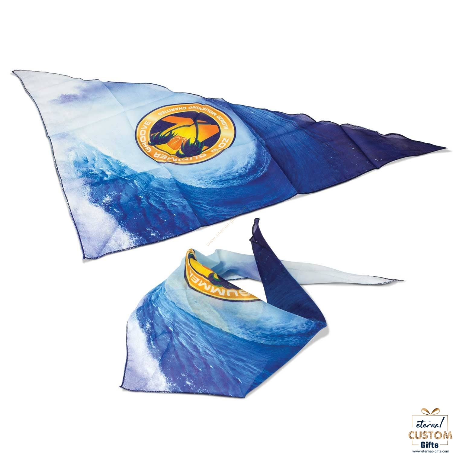 Lightweight polyester bandana which can be branded in spot colours or full colour on one side. A production lead time of 20 working days applies to this product by air freight and larger orders can be sea freighted on request to reduce the freight cost.