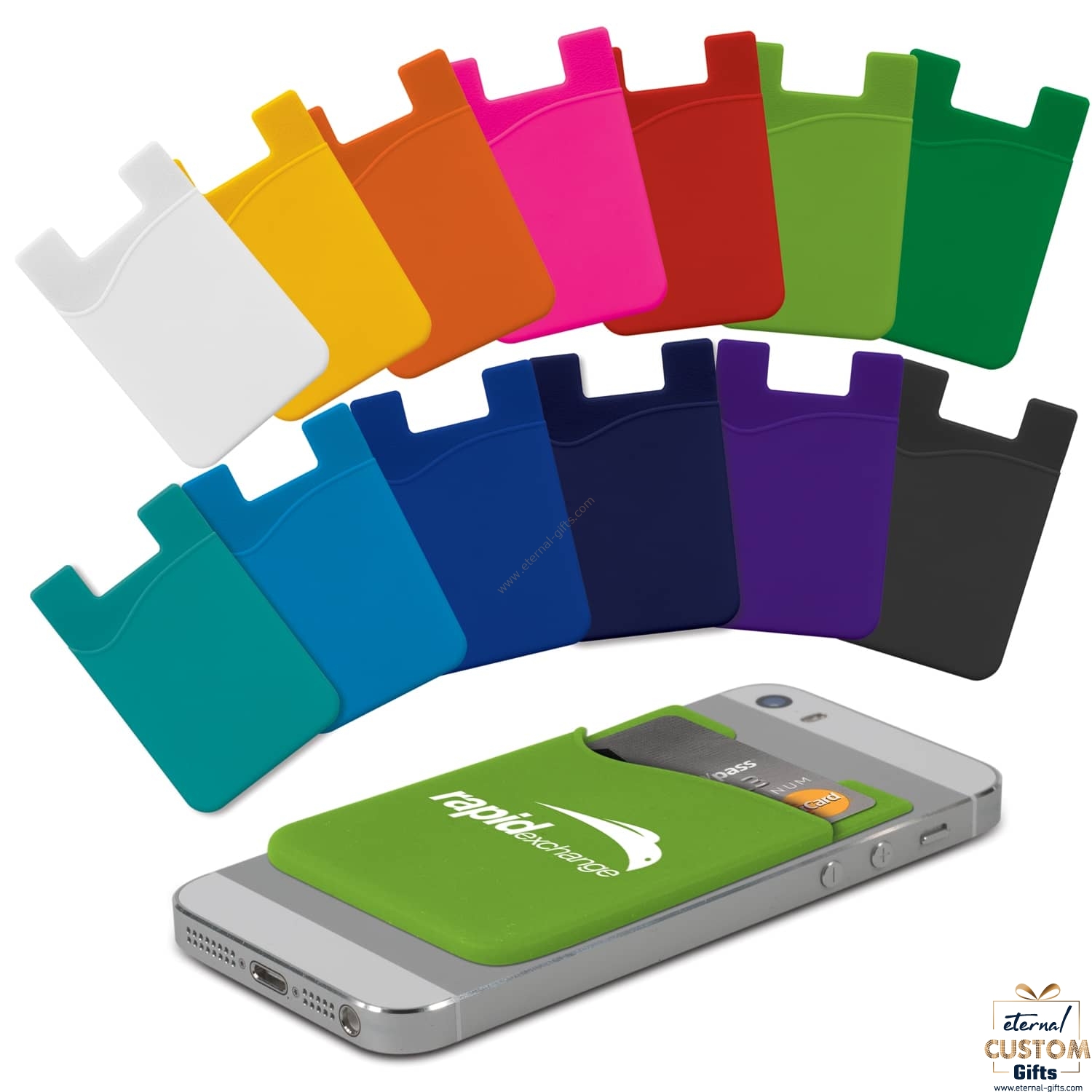Soft touch silicone wallet which adheres to the back of a phone or phone case with strong adhesive that won’t leave marks if it is removed. It is ideal for holding a drivers licence, ID, hotel key, credit card or business cards. A production lead time of 25 working days applies to this product by air freight and larger orders can be sea freighted on request to reduce the freight cost.