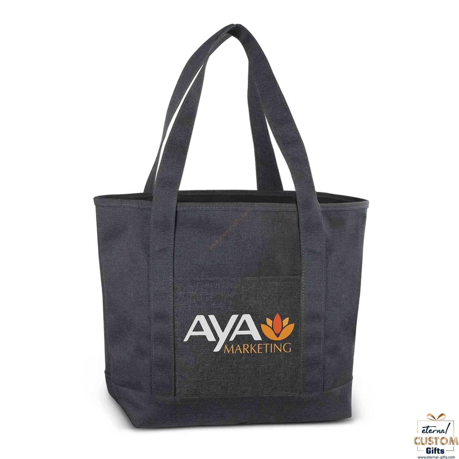 Fashion inspired tote bag with a rounded gusset and a sewn in base for added capacity. It is manufactured from poly-canvas with an on-trend heather style finish. Other features include a front slip pocket and woven carry handles so it can be comfortably carried on a shoulder.