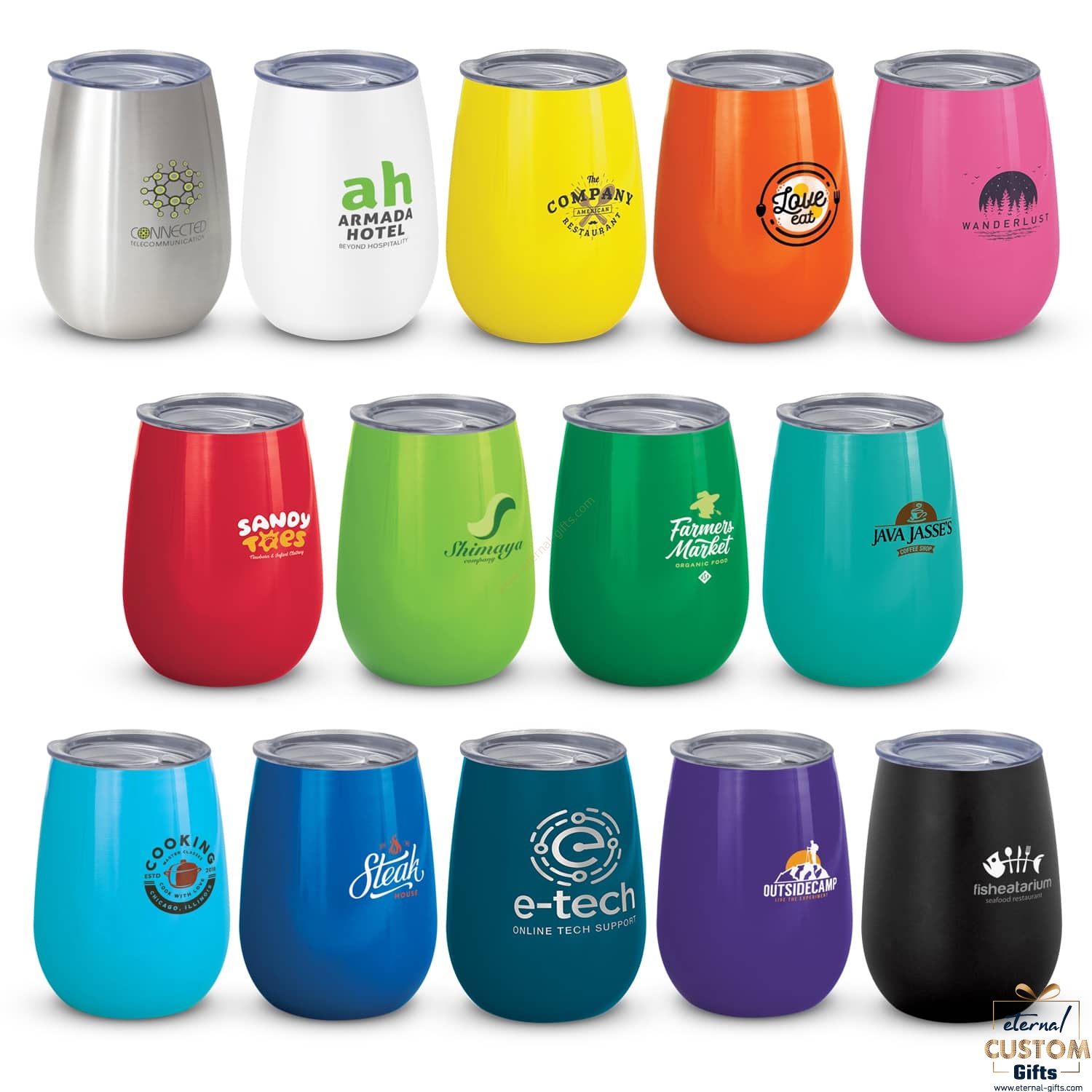 Stainless Steel, White, Yellow, Orange, Pink, Red, Bright Green, Kelly Green, Teal, Light Blue, Dark Blue, Purple, Navy, Matt Black.