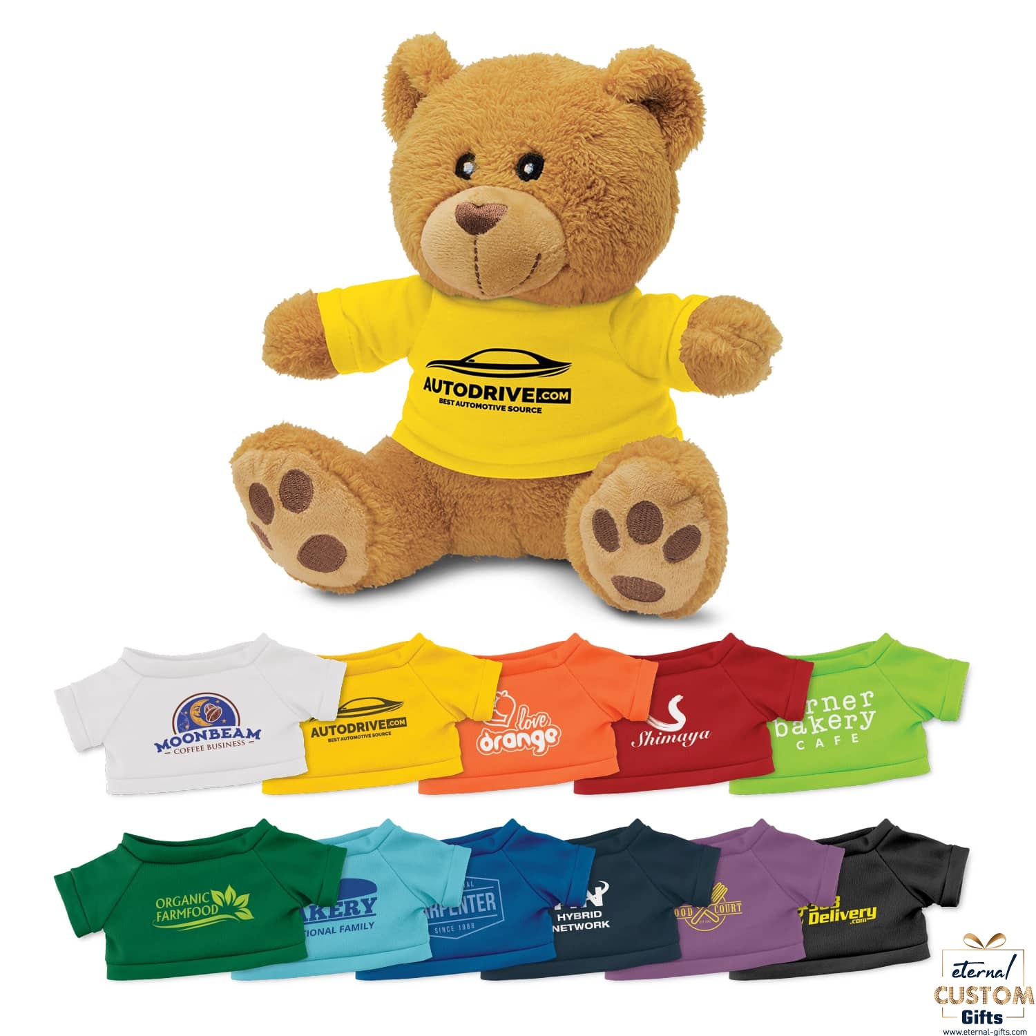 20cm soft teddy bear with embroidered eyes, RPET filling and a polyester t-shirt which is available in eleven colours. Cute, cuddly teddy bears are very popular for developing brand recognition and creating goodwill with people of all ages. They have also been manufactured to meet AS/NZS Safety Toy Standards.