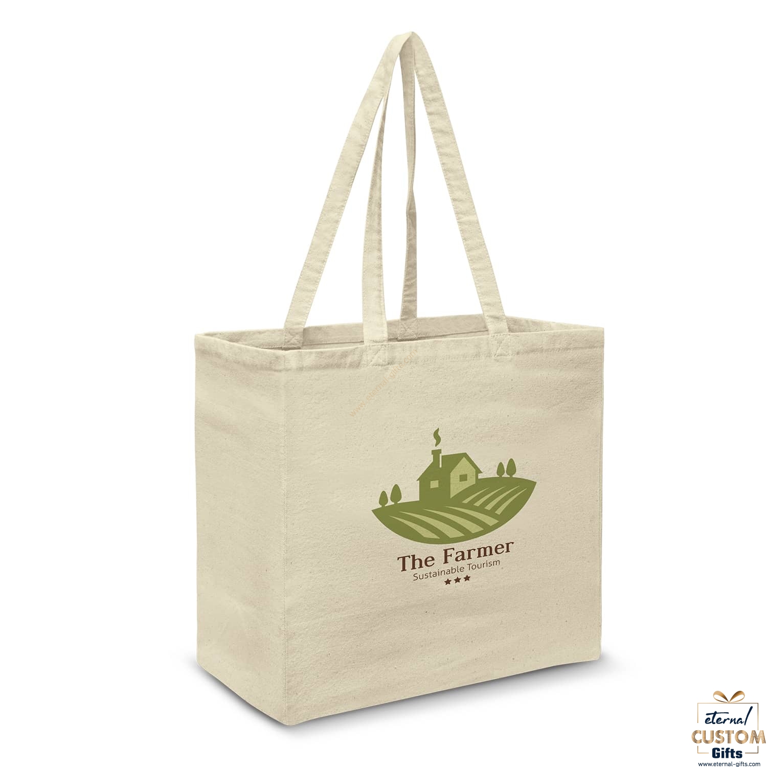 Large tote bag with an extra-wide gusset and a fabric lined hard base for added strength. It is manufactured from 280gsm natural heavy cotton canvas and has long matching handles.