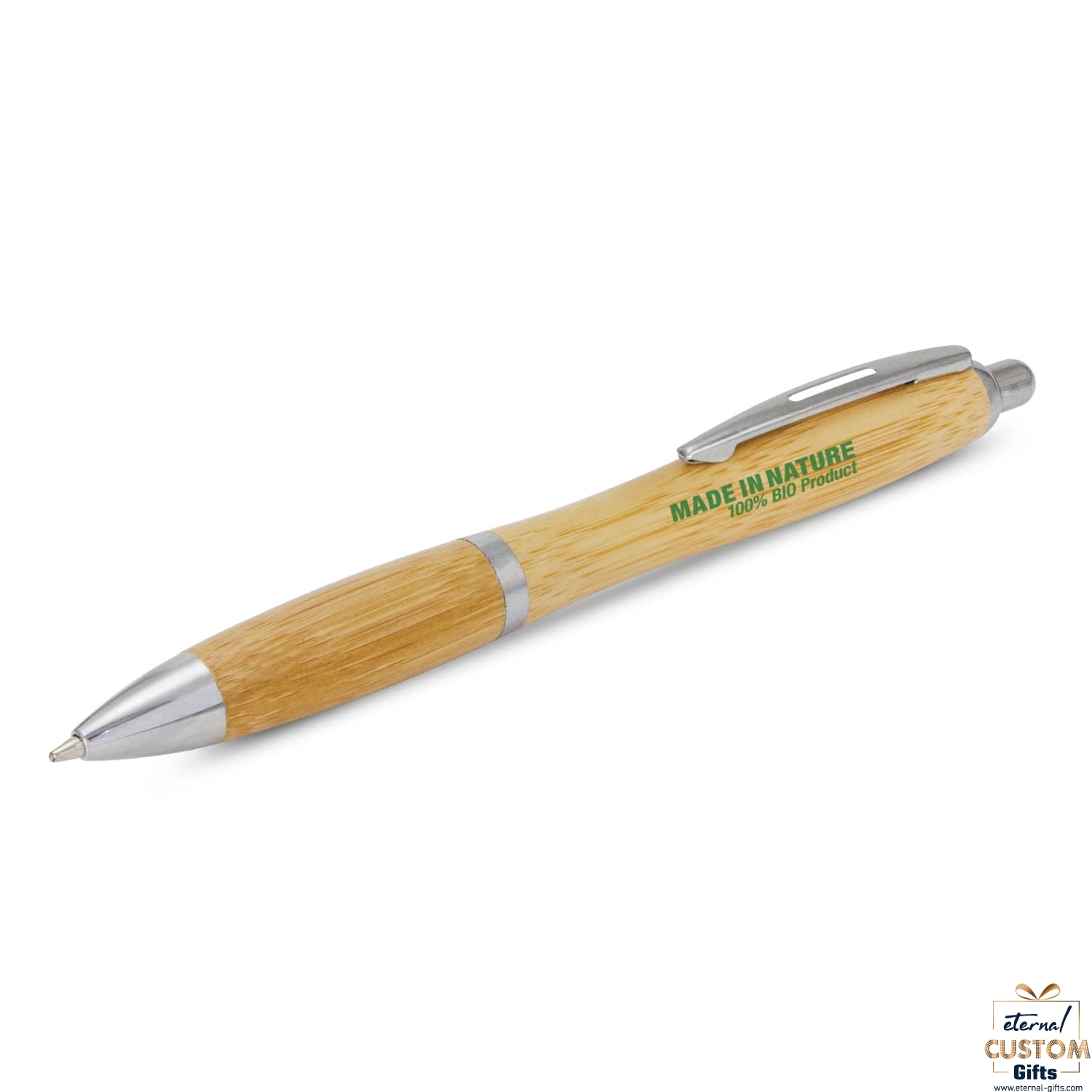 • Retractable bamboo ballpoint pen with a stylish contoured barrel