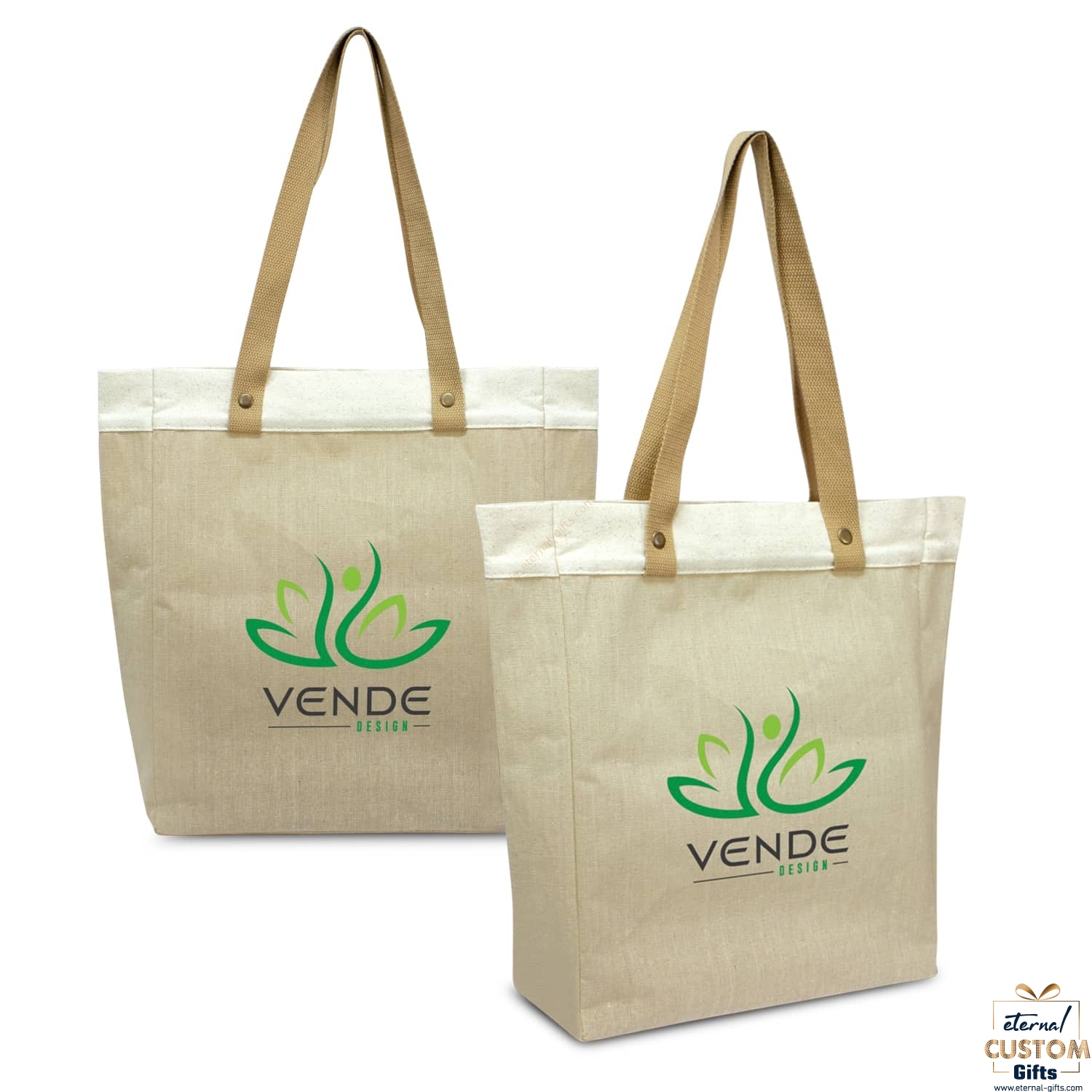 Natural laminated juco tote bag with a gusset and decorative unbleached cotton trim around the top. It has long woven carry handles that are attached with brass rivets for added strength. Juco is a versatile and popular fabric that is manufactured from a fine blend of natural jute and natural cotton.