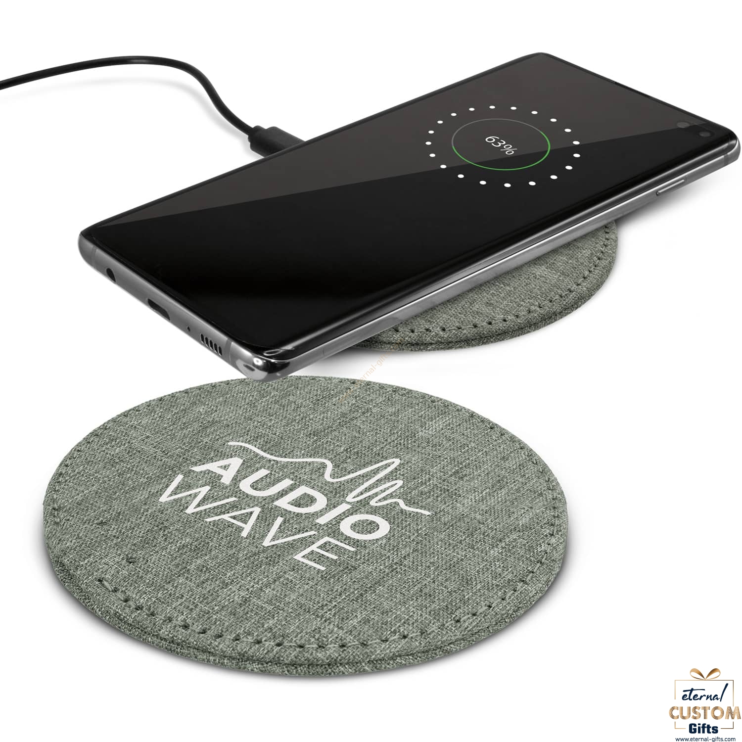 Wireless 5W phone charger which is finished with trendy poly-canvas fabric. It will charge devices that are enabled for wireless charging and will work with most modern phones. Simply plug it into any USB port or a mains adapter and place a compatible device on it for convenient wireless charging. Hadron is presented in a black box with an 80cm Micro-B USB cable and an instruction leaflet. Please note that some phone cases may affect the wireless charging connection. The wireless charger will work at the optimum power level when used with a 5V/2.4A mains adaptor. Using a PC/laptop USB output to power the wireless charger may lead to slow charging, or not charging at all. Other factors like, positioning on the charging surface and the type of case used may also impact wireless charging.