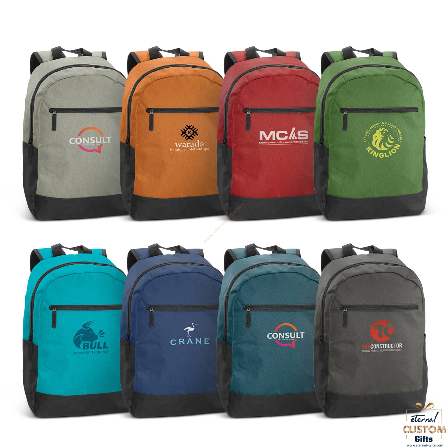 Grey, Orange, Red, Green, Light Blue, Royal Blue, Navy, Charcoal.