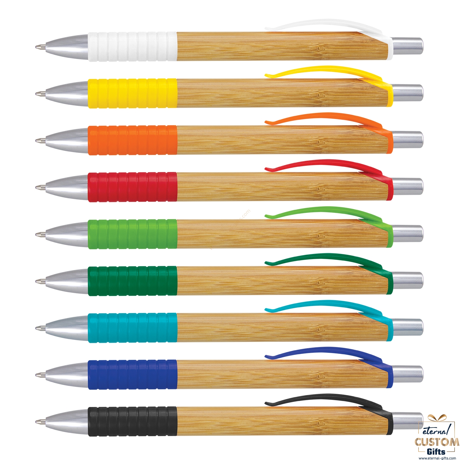 Retractable ballpoint pen with a natural bamboo barrel, a soft-touch grip and shiny chrome accents. It has a blue refill with 1000 metres of German manufactured Dokumental ink and it can be presented in an optional pen sleeve.