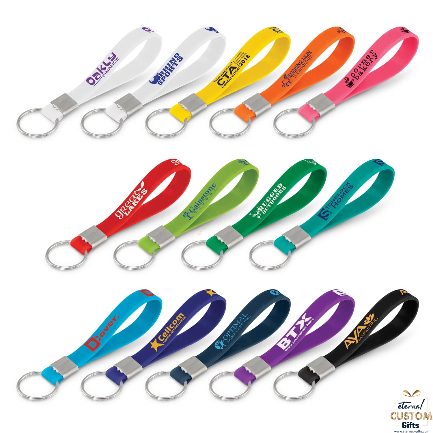 Unique key ring with a 12mm wide silicone loop. A production lead time of 25 working days applies to this product by air freight and larger orders can be sea freighted on request to reduce the freight cost.