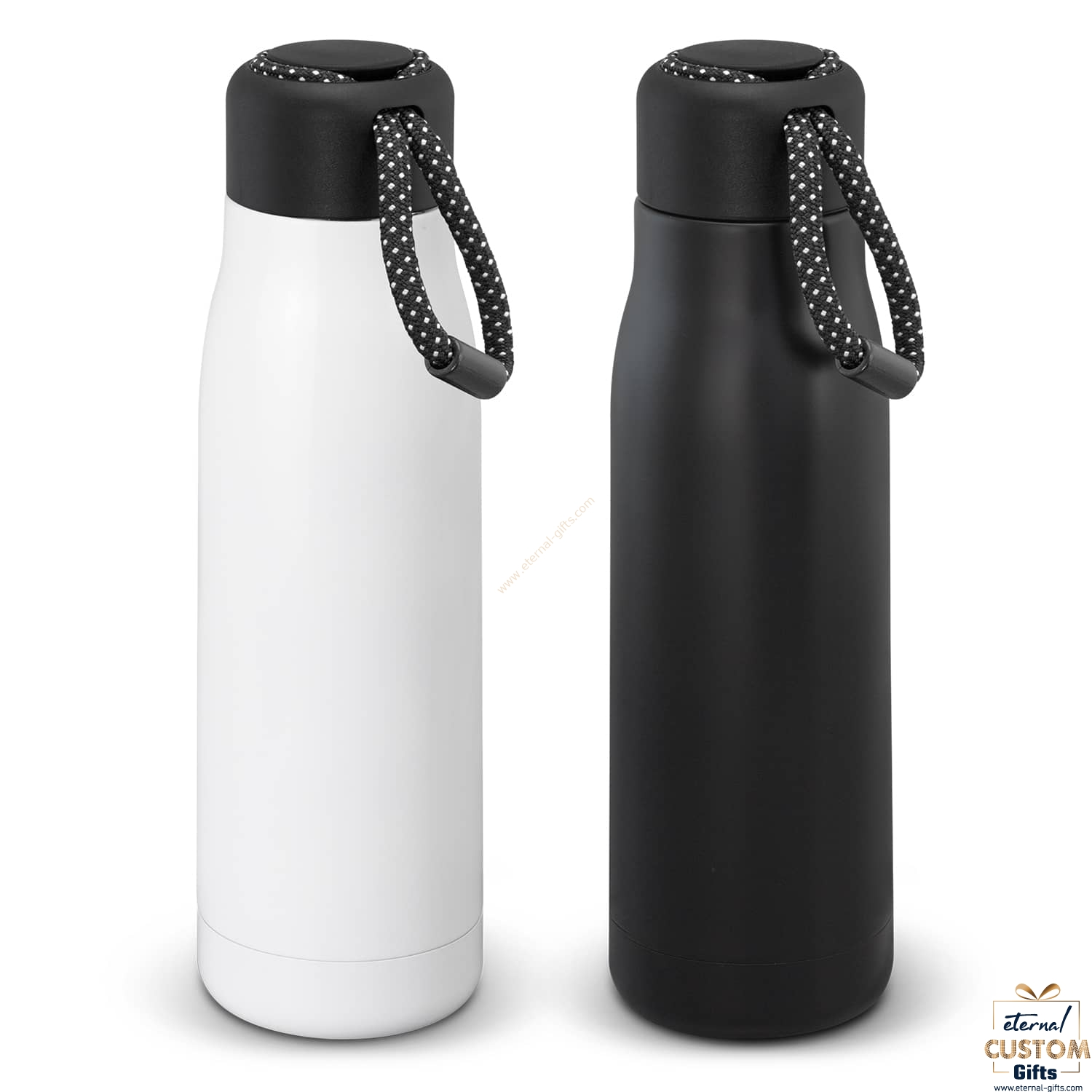 Classically designed 500ml double wall, vacuum insulated stainless steel drink bottle that will keep drinks cold for 24 hours or hot for up to 12 hours. Halifax has a secure screw on lid with a smart, woven carry handle. It is presented in a black gift box or an optional gift tube. The bottle is BPA free and laser engraves to a stainless steel finish. This product is not dishwasher safe and handwashing is recommended.