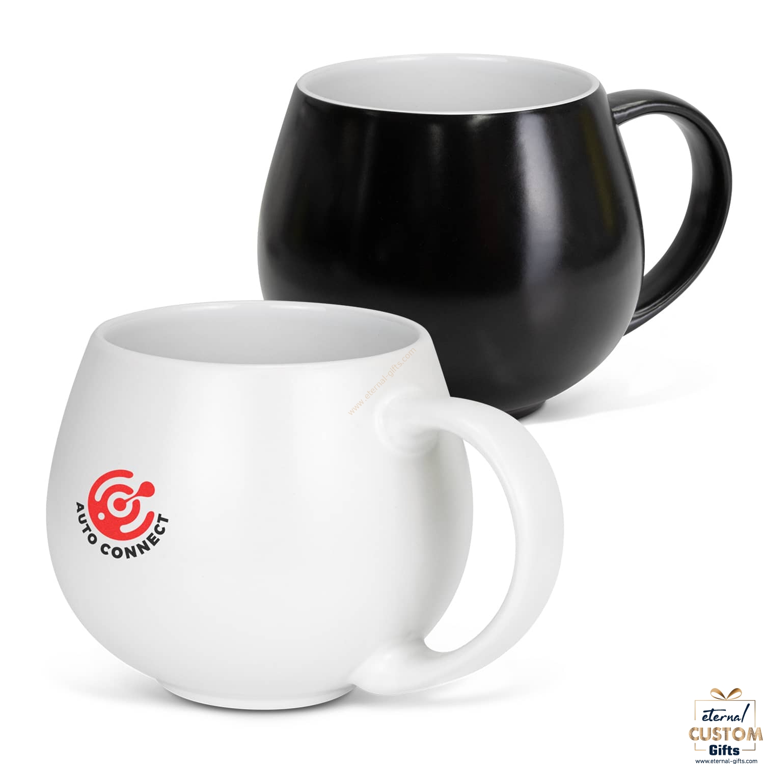Premium 450ml ceramic coffee mug with a unique round shape which is extremely comfortable to hold. This product is presented in an individual natural gift box. This product is not dishwasher safe, and handwashing is recommended.