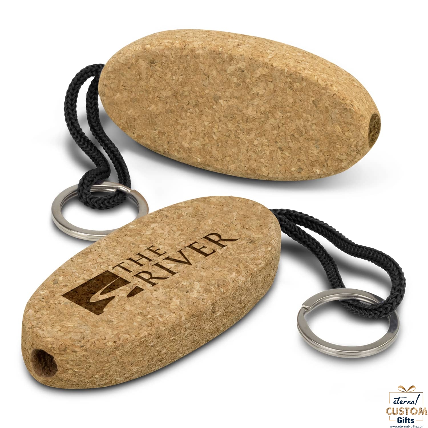 - Large natural cork keyring with a woven strap