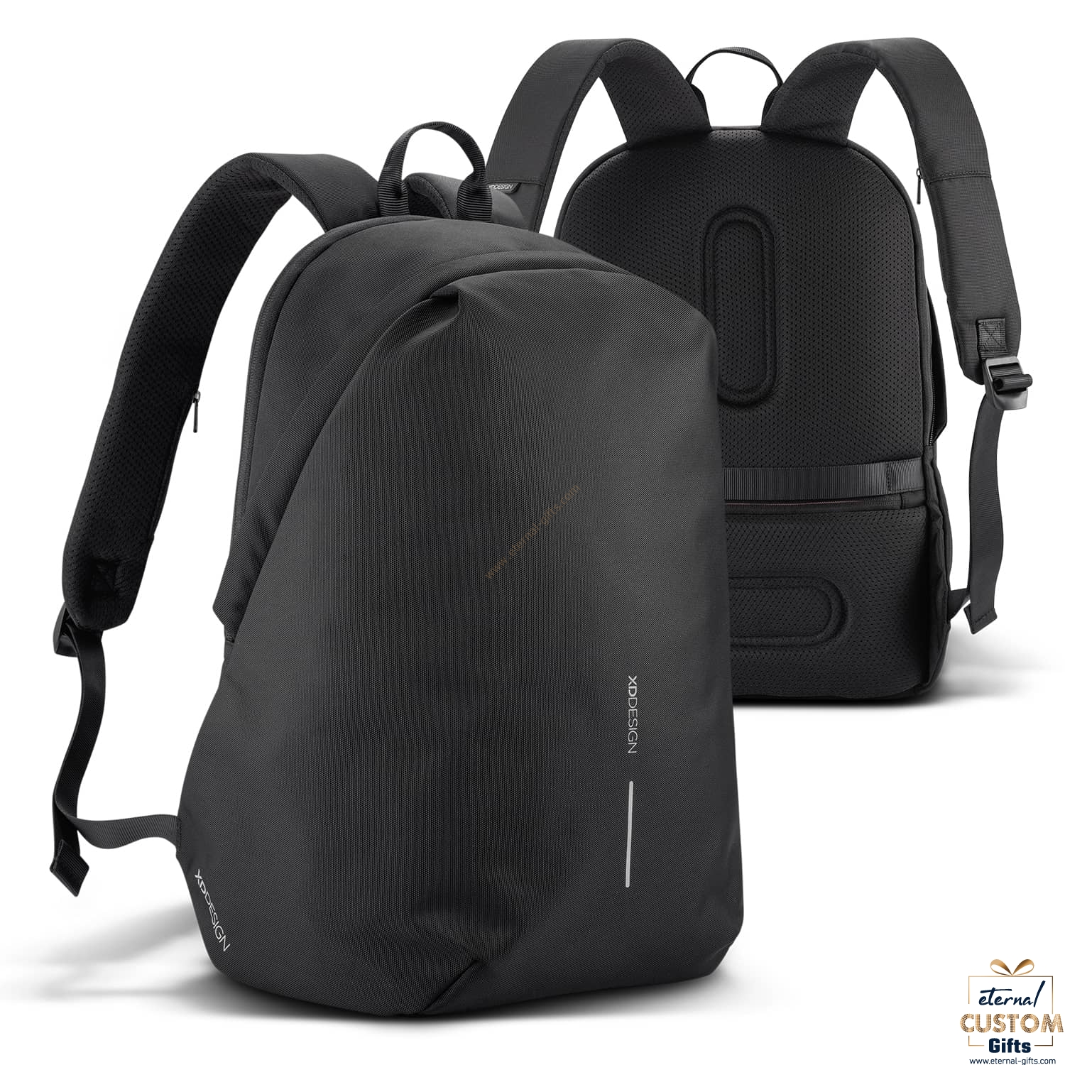 An iconic backpack developed by the innovative team at XD Design, the Bobby Soft Backpack is perfectly suited for school, work, or day trip. The anti-theft design keeps belongings secure using hidden pockets with RFID protection and hidden zippers. The main compartment can only be accessed from the back of the backpack and includes a padded sleeve to fit a 15.6 inch laptop as well as various sleeves and mesh pockets for organised storage solutions. Bobby is full of features to make life easier on the go, including an integrated USB charging port, a keychain clip, reflective safety strips and uses RPET materials. Each Bobby Soft Backpack saves 22L of water and reuses 37 plastic bottles. The Bobby Soft Backpack has an AWARE tracer, using a physical tracer and blockchain technology to ensure the use of genuine recycled fabric materials and water reduction is guaranteed.