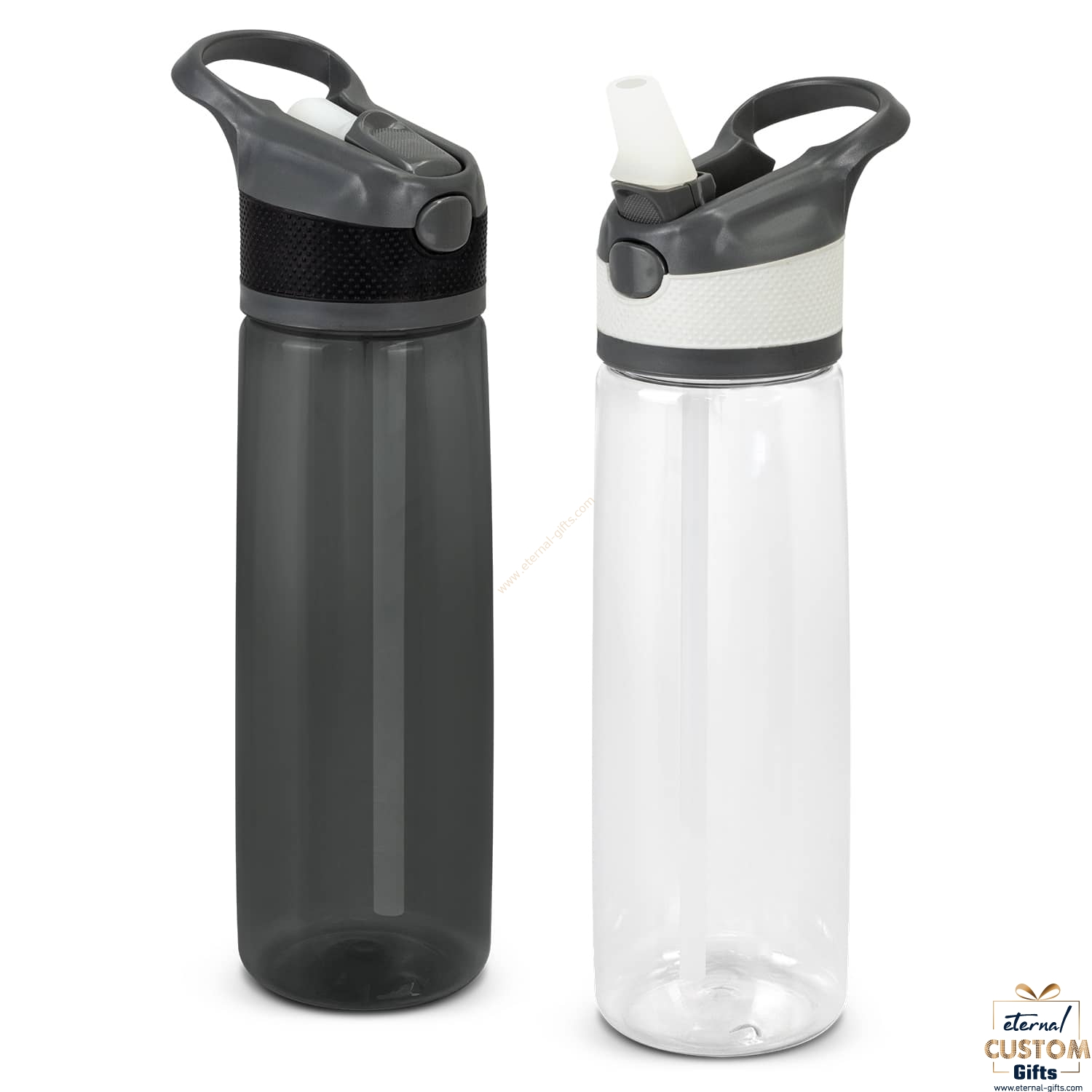 Timeless 800ml water bottle which has a secure screw on lid that has a carry handle. Rover is manufactured from polyethylene which is durable and lasting. Other features include a push button release for the flip-out drinking valve with a straw. This product is not dishwasher safe and handwashing is recommended.