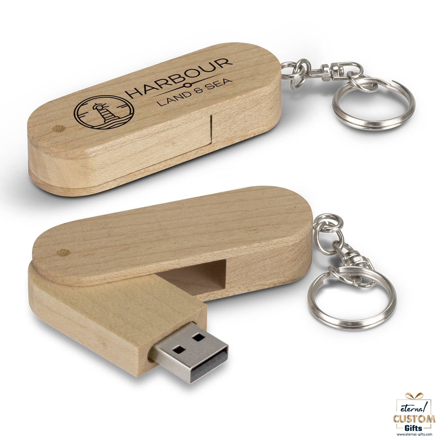 - Stylish 8GB flash drive made from natural maple wood with a matching swivel