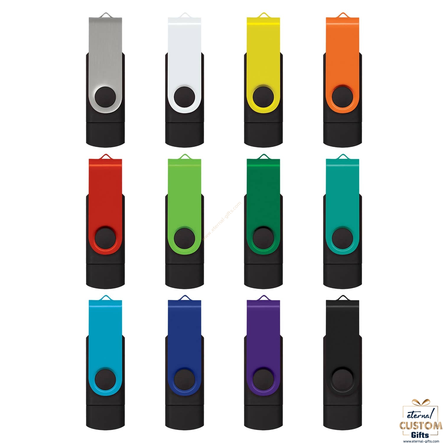 Classic 16GB flash drive with an aluminium swivel and a soft touch rubber lacquered case. It has a USB Type-A connector on one side and a USB Type-C connector on the other. Helix has a read speed of 10MB/s and a write speed of 3MB/s, with data uploading available on request.