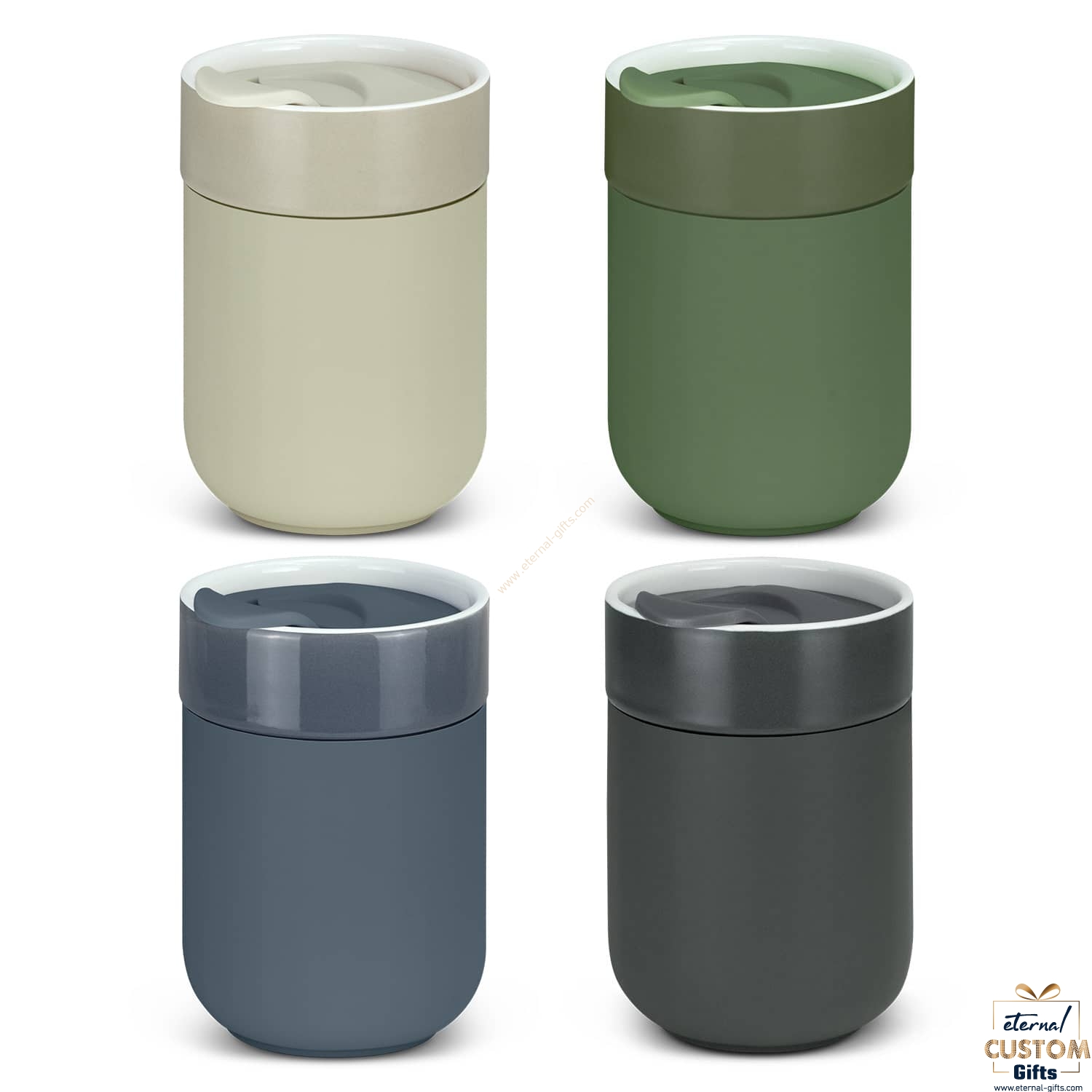 Fashion-inspired 300ml ceramic coffee cup that has a heat-resistant silicone casing. The slide-closure lid insert can be easily taken in and out. This product is not dishwasher safe and handwashing is recommended.
