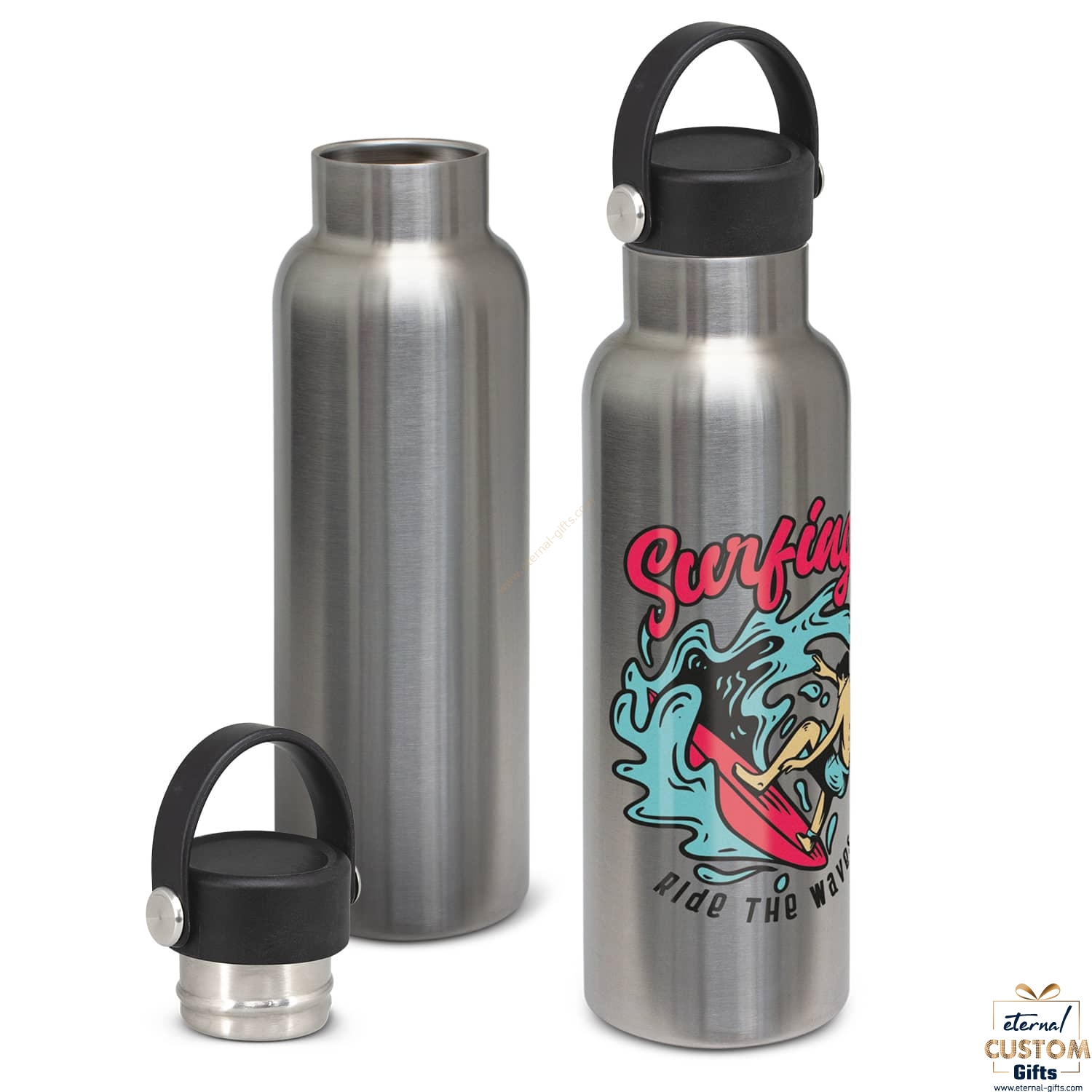 Classic 650ml double wall, vacuum insulated stainless steel drink bottle which will keep drinks cold for 24 hours or hot for up to 12 hours. Nomad offers a carry lid for easy transportation, is BPA-free and laser engraves to a natural etch. Nomad is nicely presented in a black gift box or an optional gift tube. This product is not dishwasher safe and handwashing is recommended.