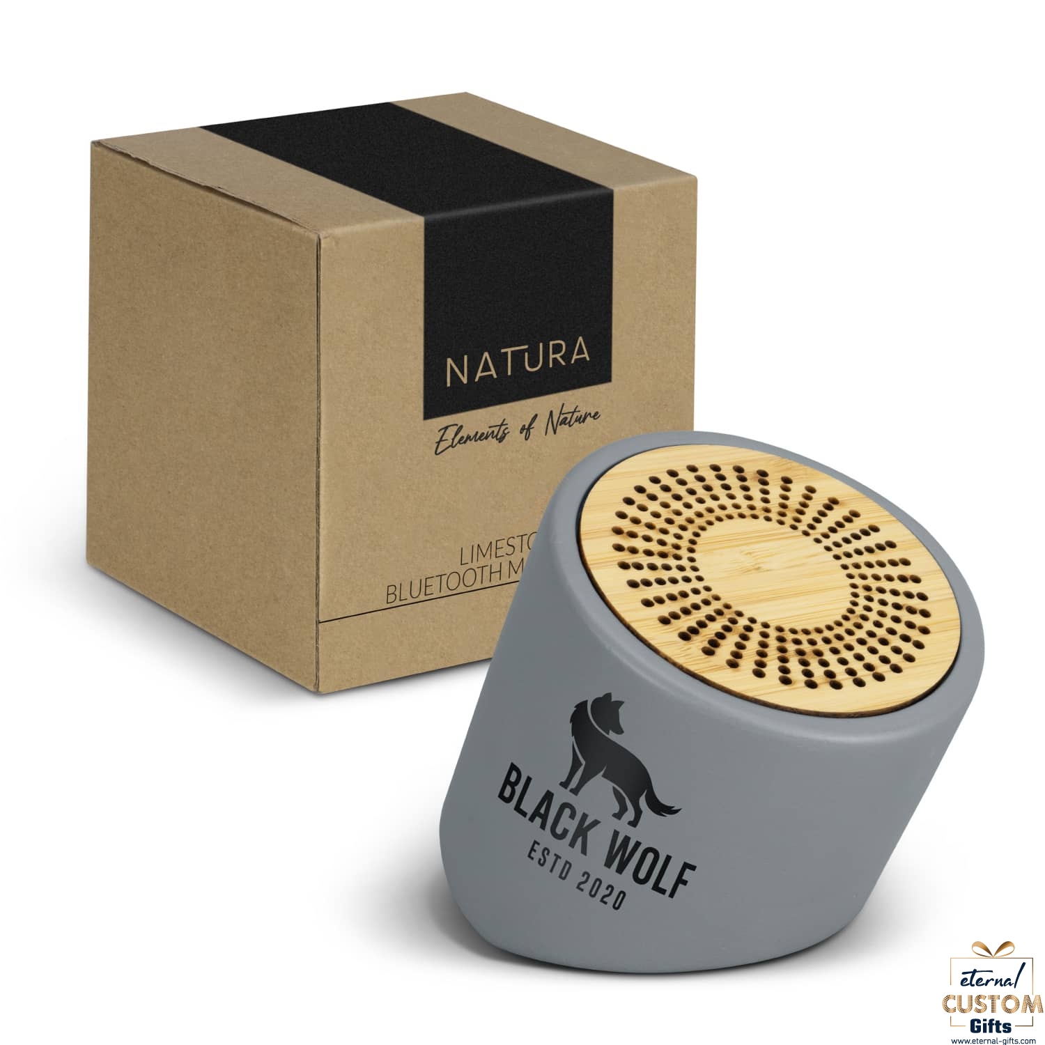 - 3W Bluetooth speaker with limestone cement casing and natural bamboo grill