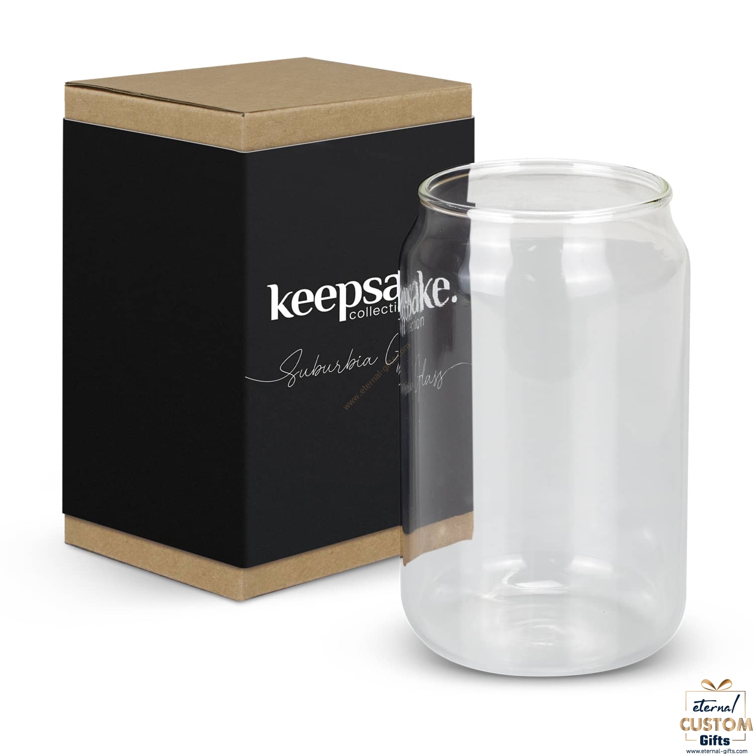 Premium 300ml borosilicate glass with a unique can-shaped silhouette for easy grip. Presented in a natural gift box with a branded black sleeve.