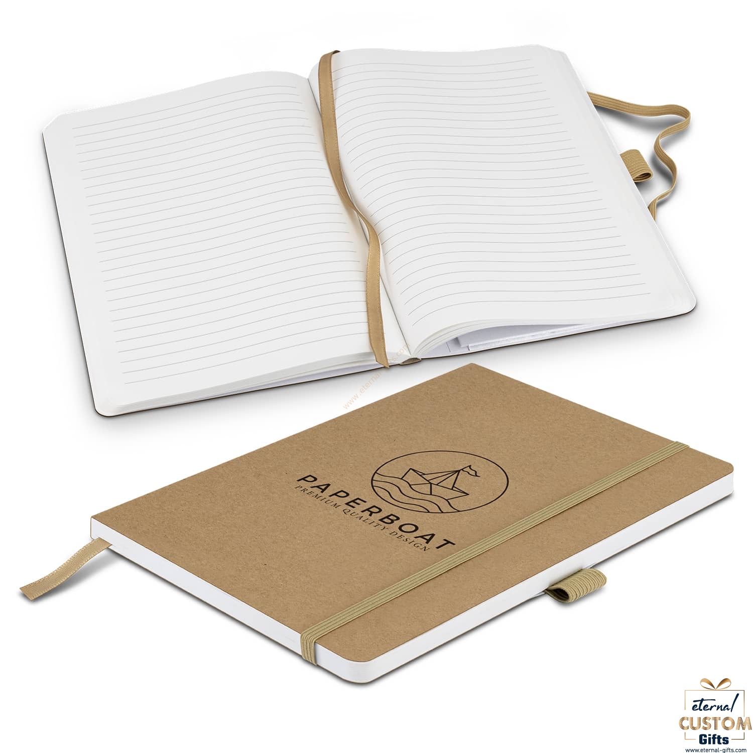 - Medium-sized notebook with a soft kraft cover and durable stone paper pages