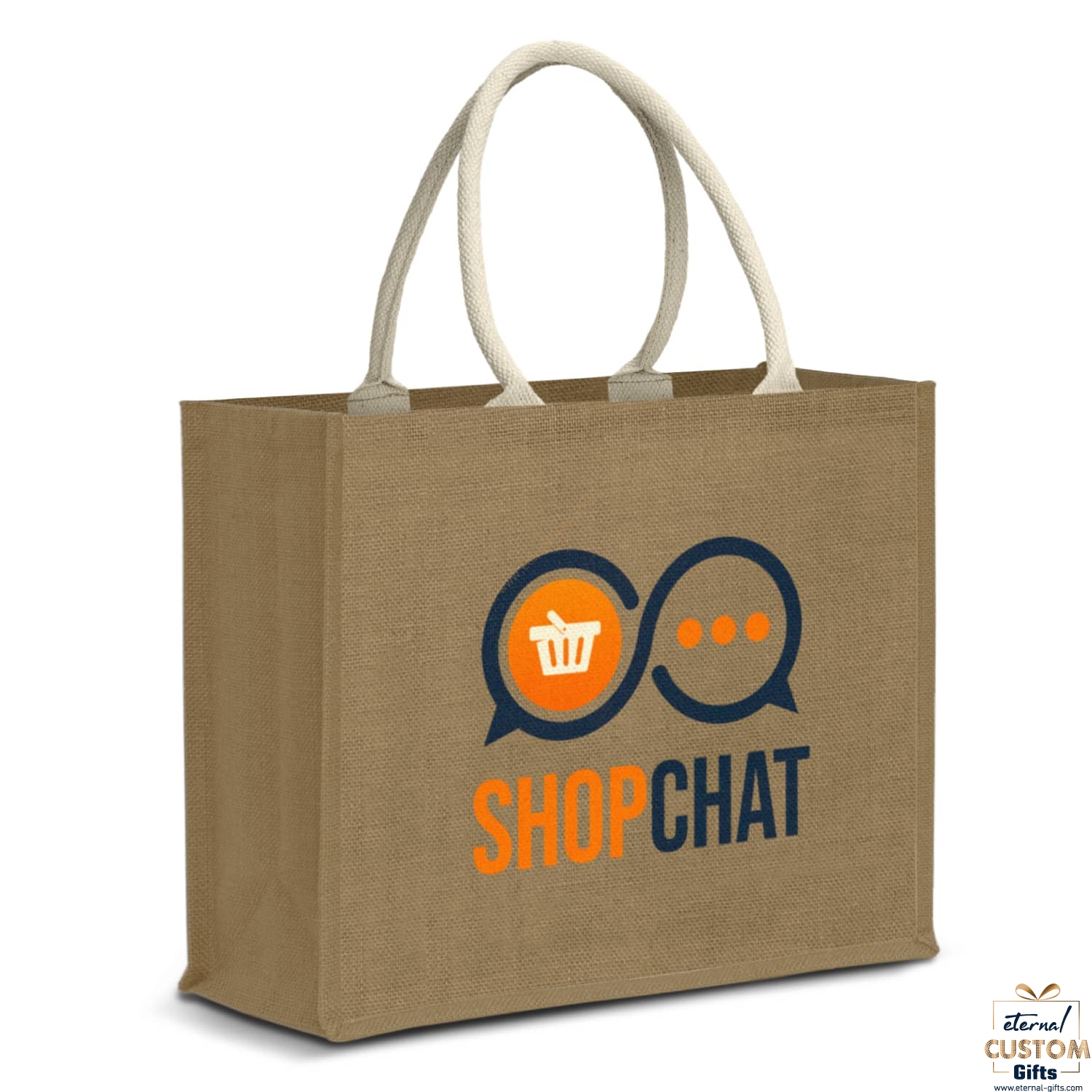 Handy reinforced 27L tote bag. The bag is made with 290gsm corn starch jute with natural cotton handles.