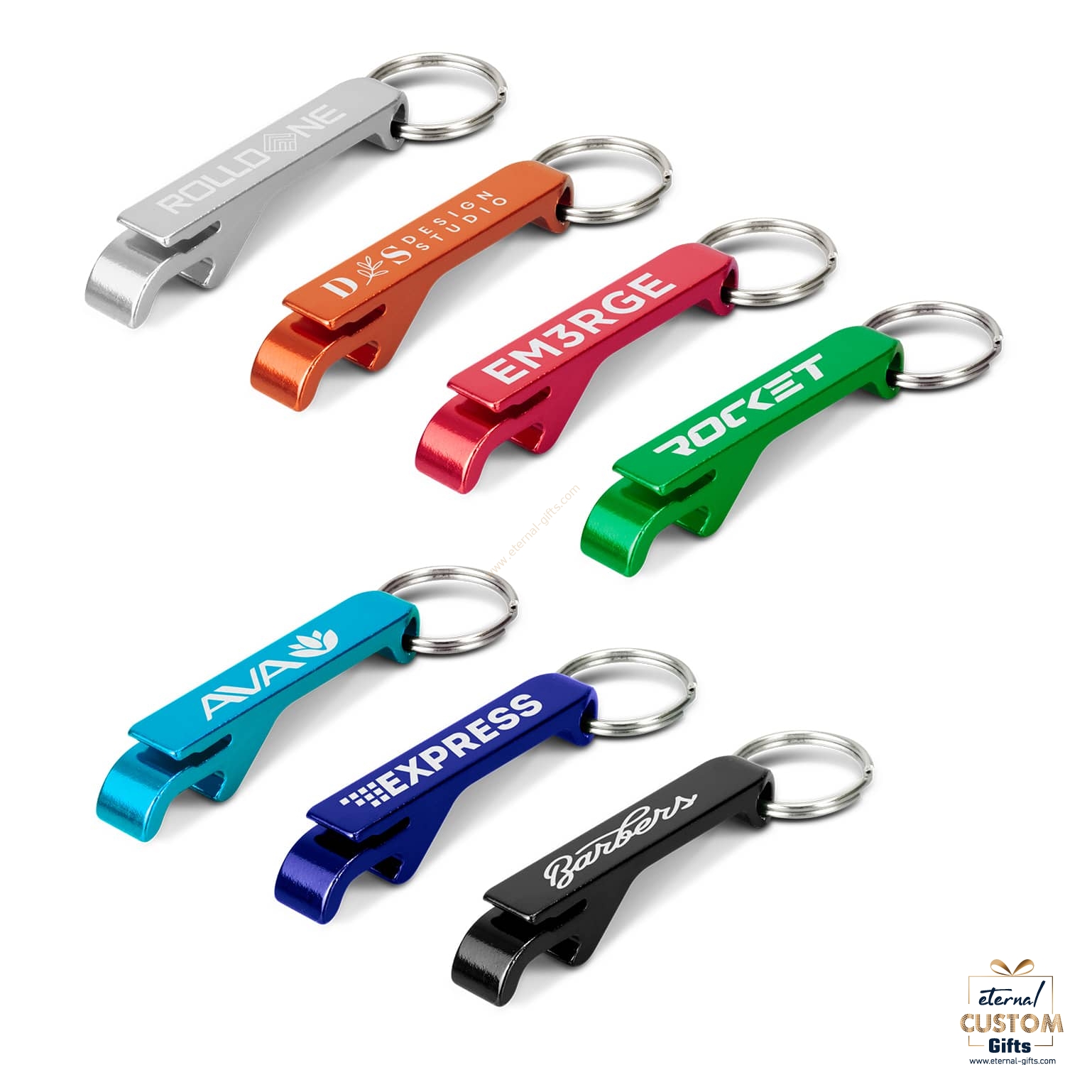 A versatile promotional product, this aluminium bottle opener has a key ring and can also be used to open drink cans.