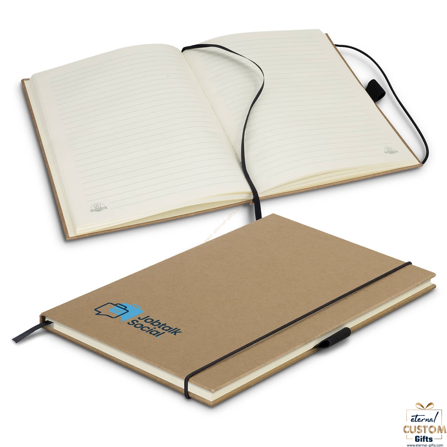 - Medium-sized notebook with a hard kraft cover and pages made from sugarcane waste