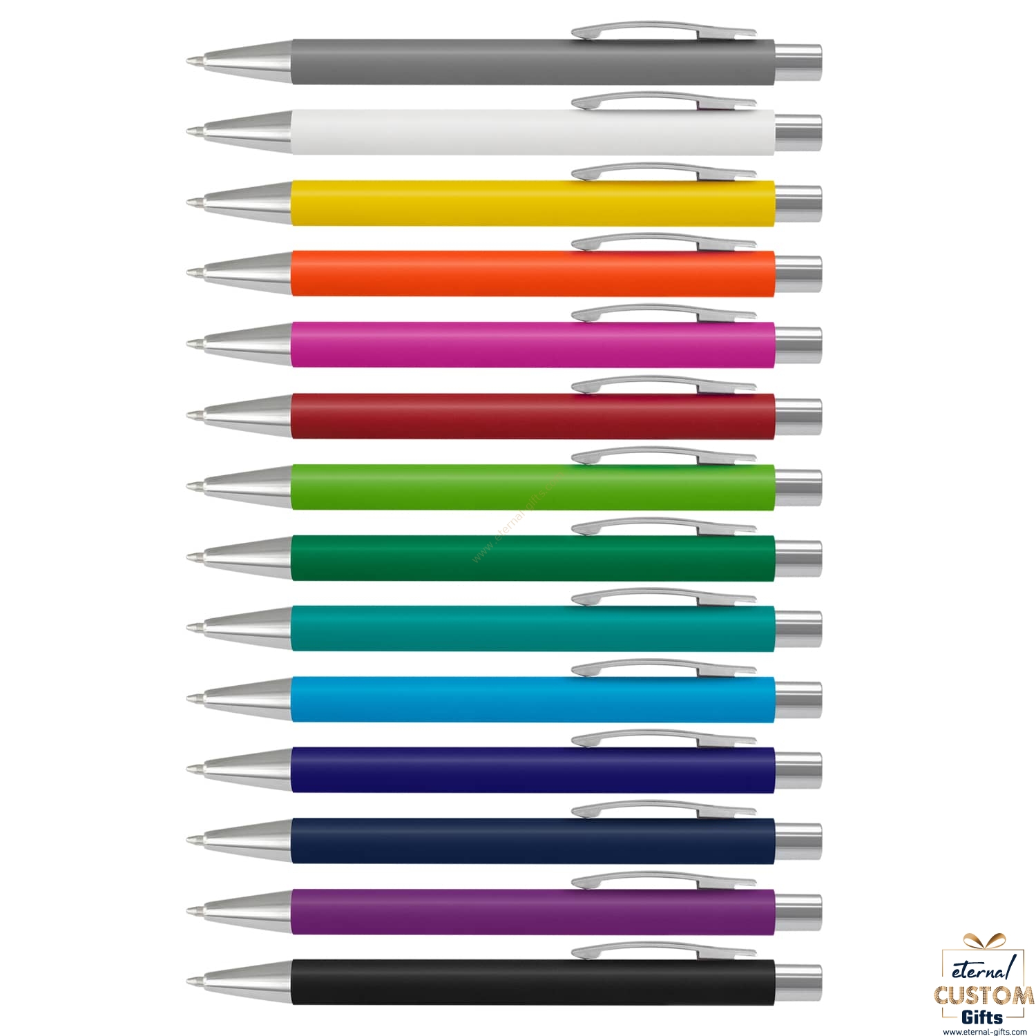 - Retractable plastic ballpoint pen with a soft-touch matte finish