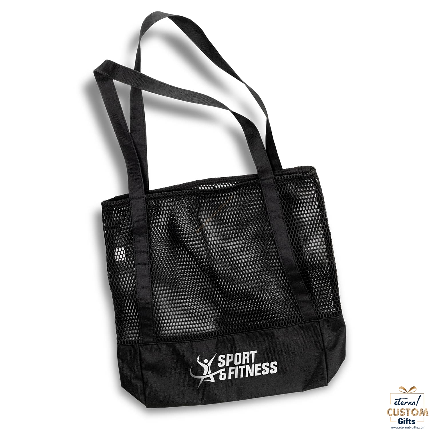 Luxe sports tote bag made using hard-wearing 600D polyester. Lorna features mesh construction for added breathability, making it ideal for carrying sports gear and gym accessories. A solid polyester base and gusset provides additional strength and increases the bag’s capacity.