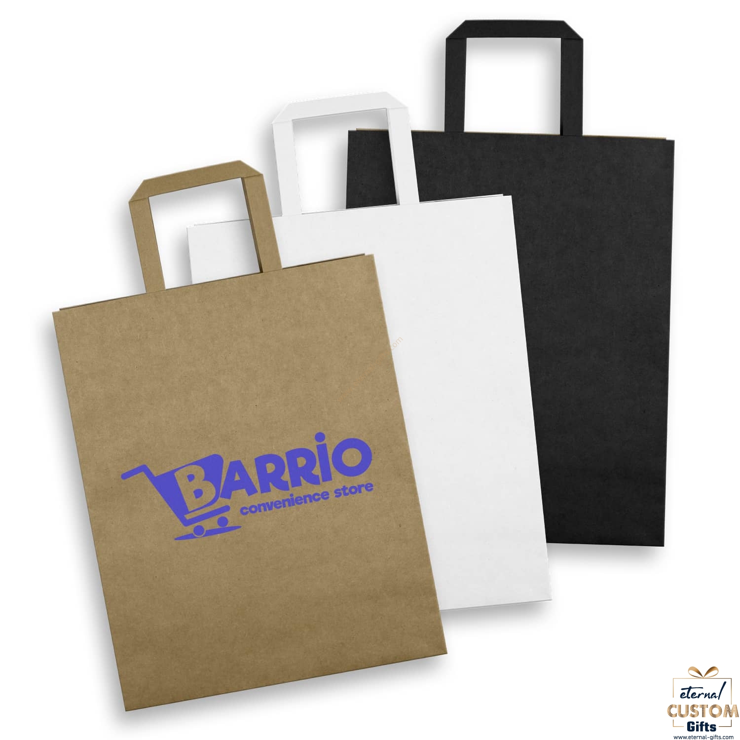 Large carry bag made from 180gsm paper with a reinforced base and square-folded 100gsm paper handles. This bag is portrait orientated with handles and gusset along the shorter edges.