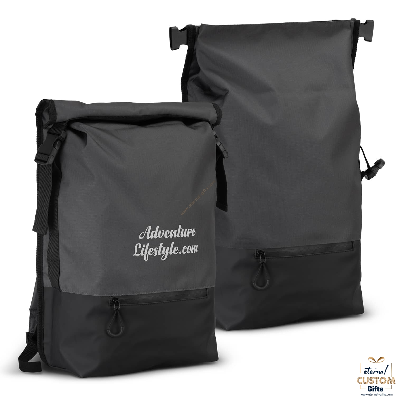 Versatile and robust 19L roll-top commuter backpack made from 600D ripstop polyester with 210D lining. The roll-top closure has secure squeeze-release buckles and snap buttons to help close the spacious main compartment. Other features include a PU panelled base for added durability, a padded compartment to fit a 15″ laptop, a comfortable padded back and with adjustable shoulder straps, a zippered front pocket and a discreet zippered side pocket.