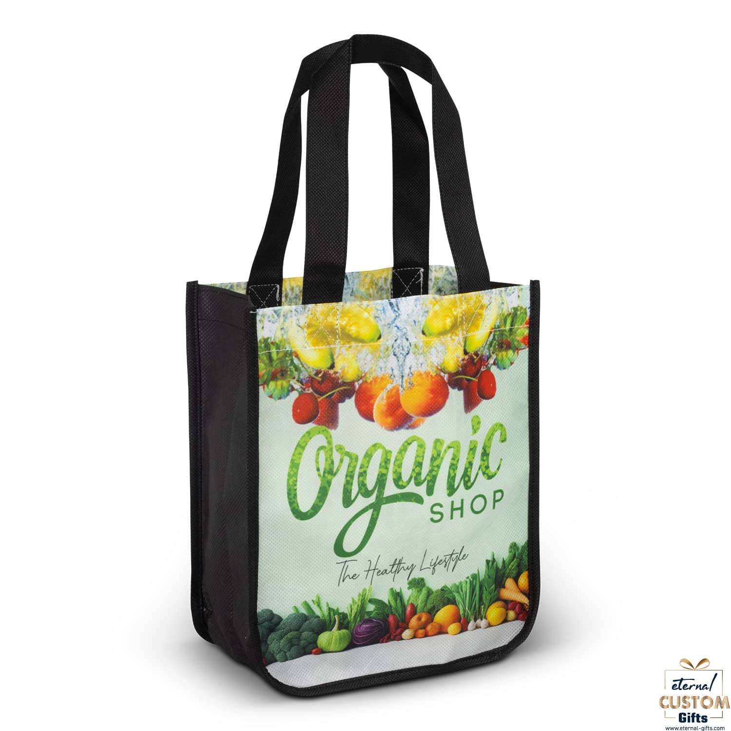 Small 5L tote bag made from 80gsm PET with a large gusset for added capacity. It can be branded in spot colours or full colour on both sides at no extra cost. A production lead time of 20 working days applies to this product by air freight.