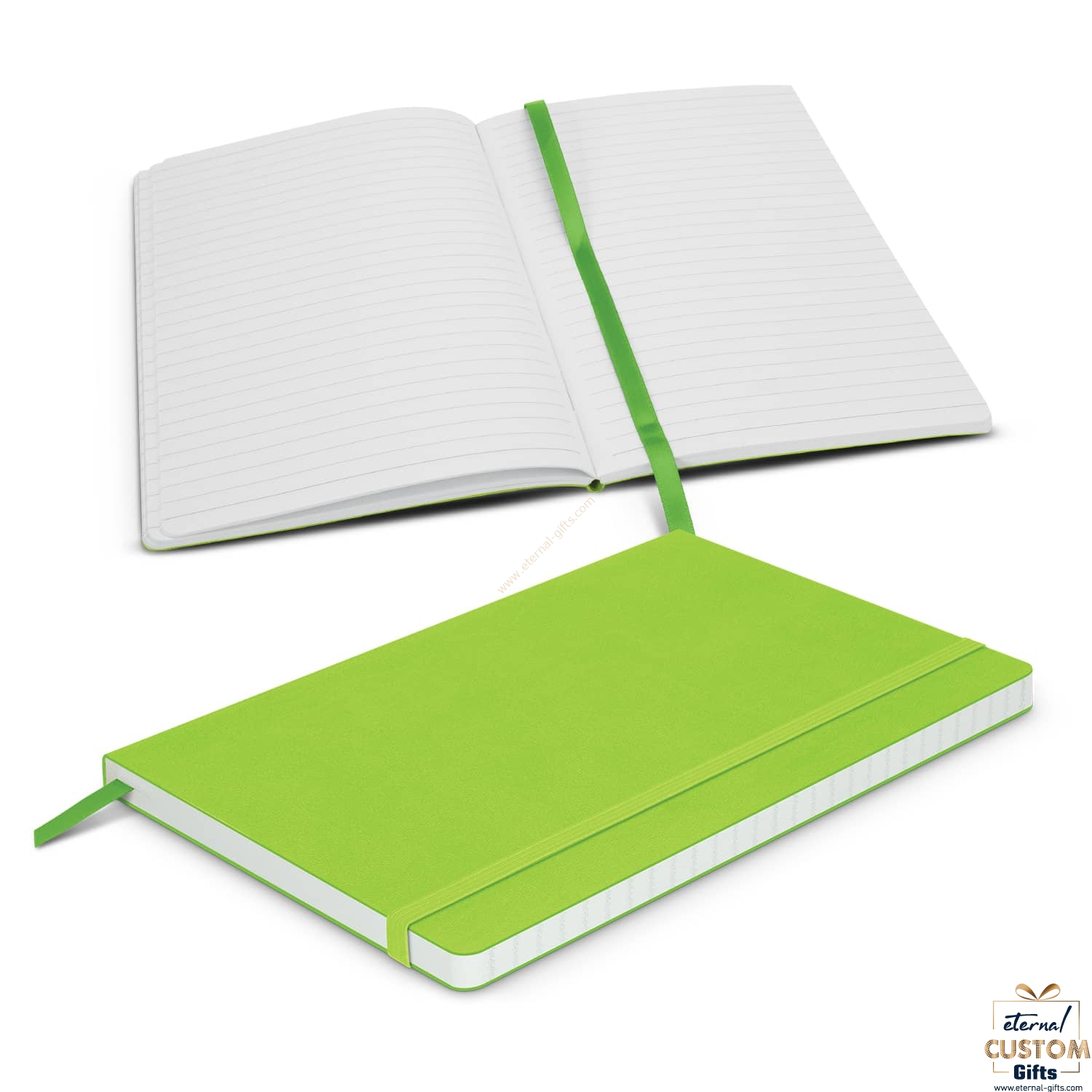Affordable medium-size notebook with a soft PU cover which thermo debosses to a stunning two-tone finish. It has 80 leaves (160 pages) of 70gsm lined paper, a bookmark ribbon and an elastic closure band.