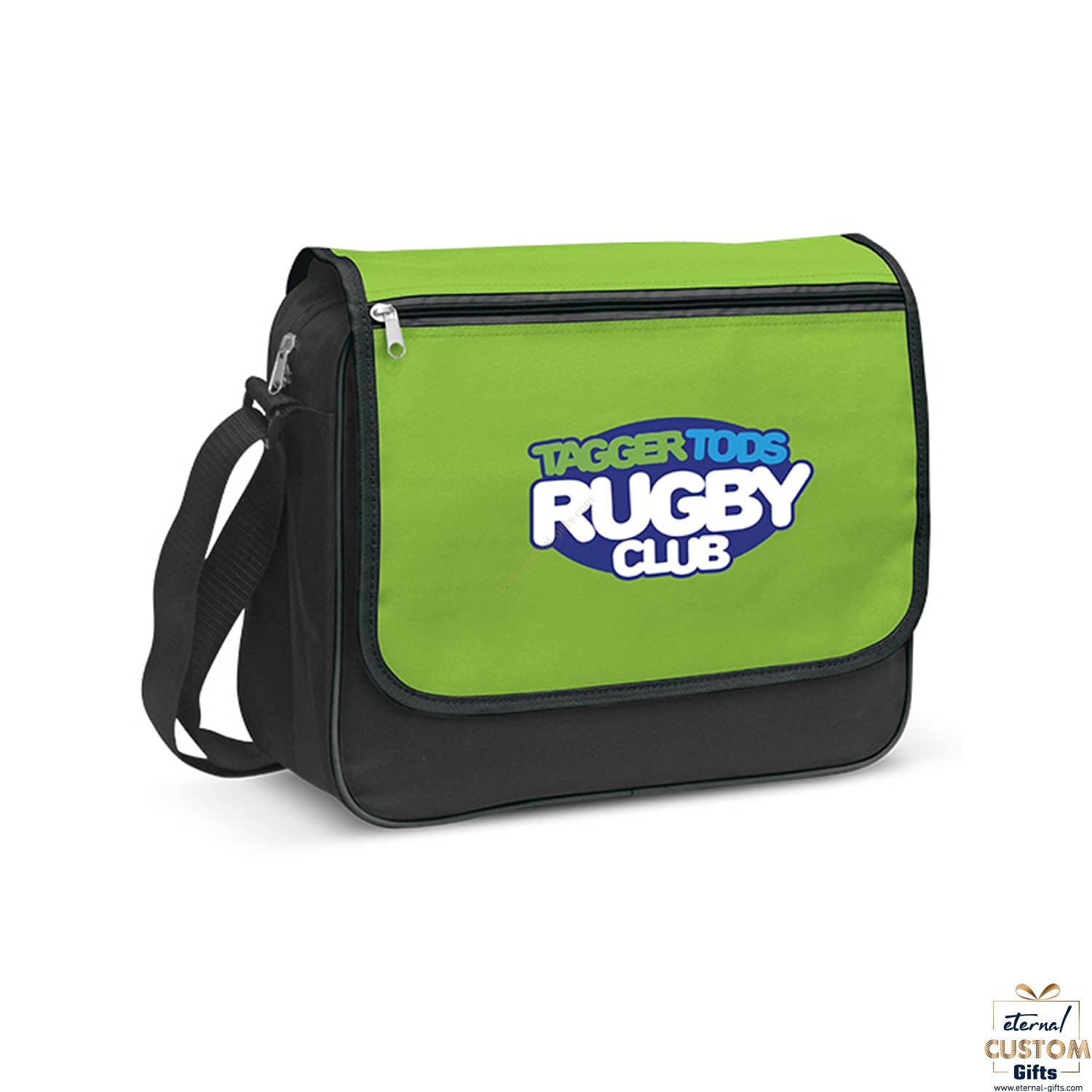Classic messenger bag with a Velcro closure which is manufactured from tough 600D polyester. It has a large gusset for increased capacity and an adjustable woven shoulder strap. Other features include a large zippered front pocket and a mesh water bottle carrier.